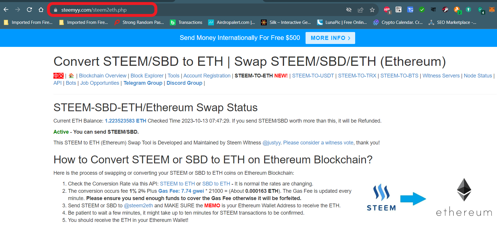 স্টিমিটের উইটনেস এবং ডেভেলপার @justyy র এক অসাধারণ স্টিম-ইথার অটো এক্সচেঞ্জ টুল : "STEEM-TO-ETH"