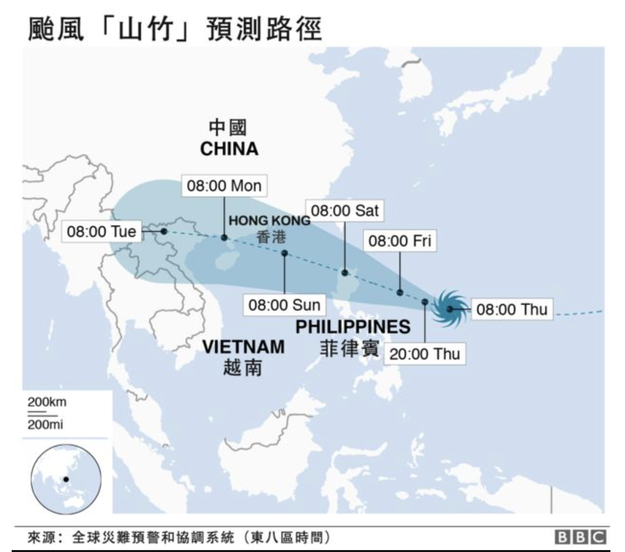 香港天文台周四發佈警告,呼籲市民採取適當防禦措施。天文台表示,儘管山竹的路徑依然存在變數,但由於其環流廣闊,香港周日料仍將有狂風大雨,海面將浪高洶湧。