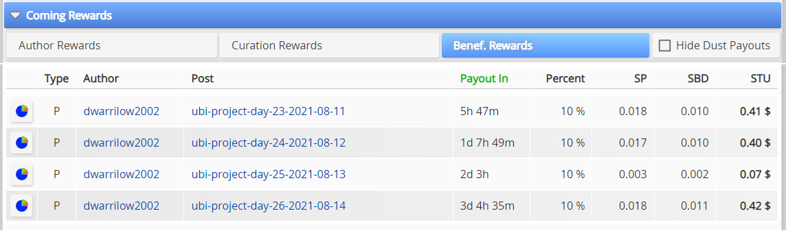 A particular "leader" would create posts that promoted other members and develop a list of ten percent beneficiaries. For the beneficiaries, the earnings met expectations. Earning an average of $ 0.325 per day is a good starting point as a basic income. My hope for this group was we could have eventually risen to $10.00 per day.