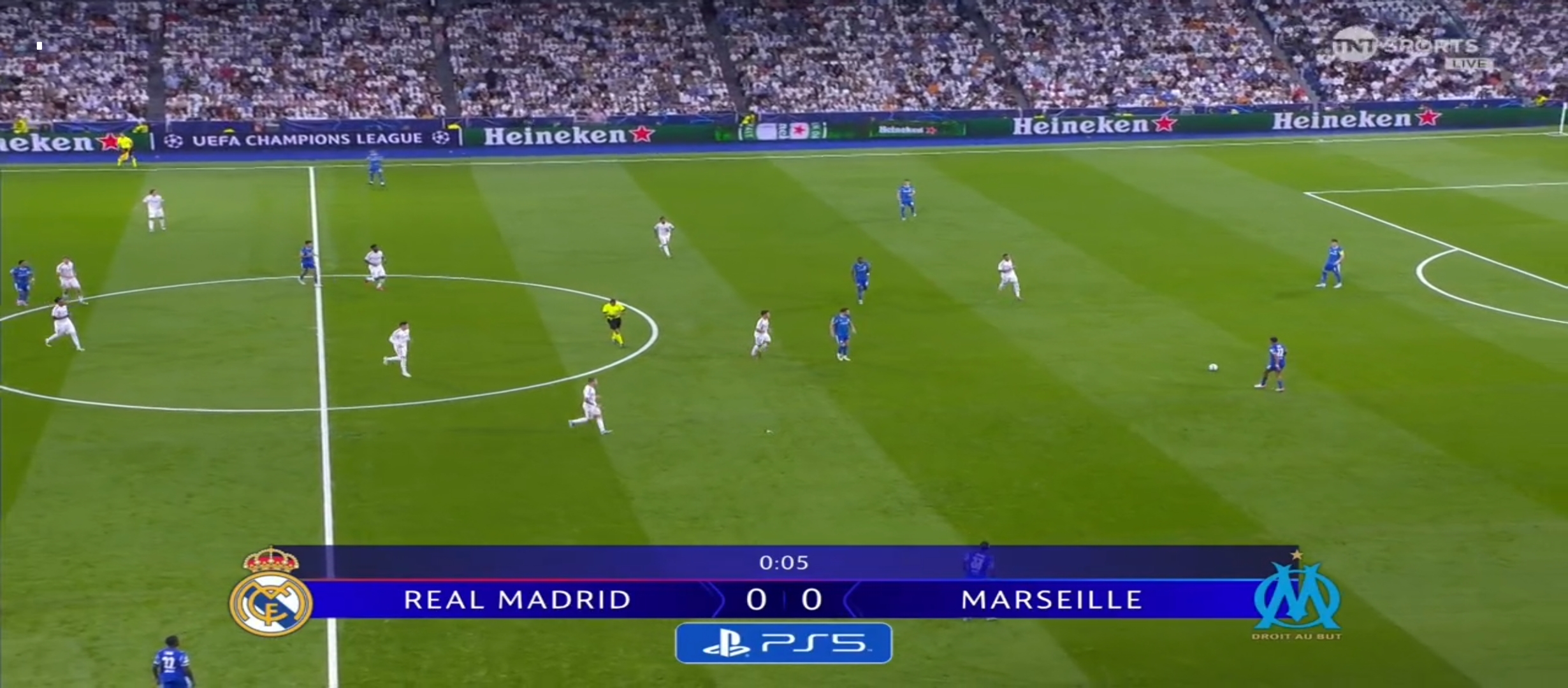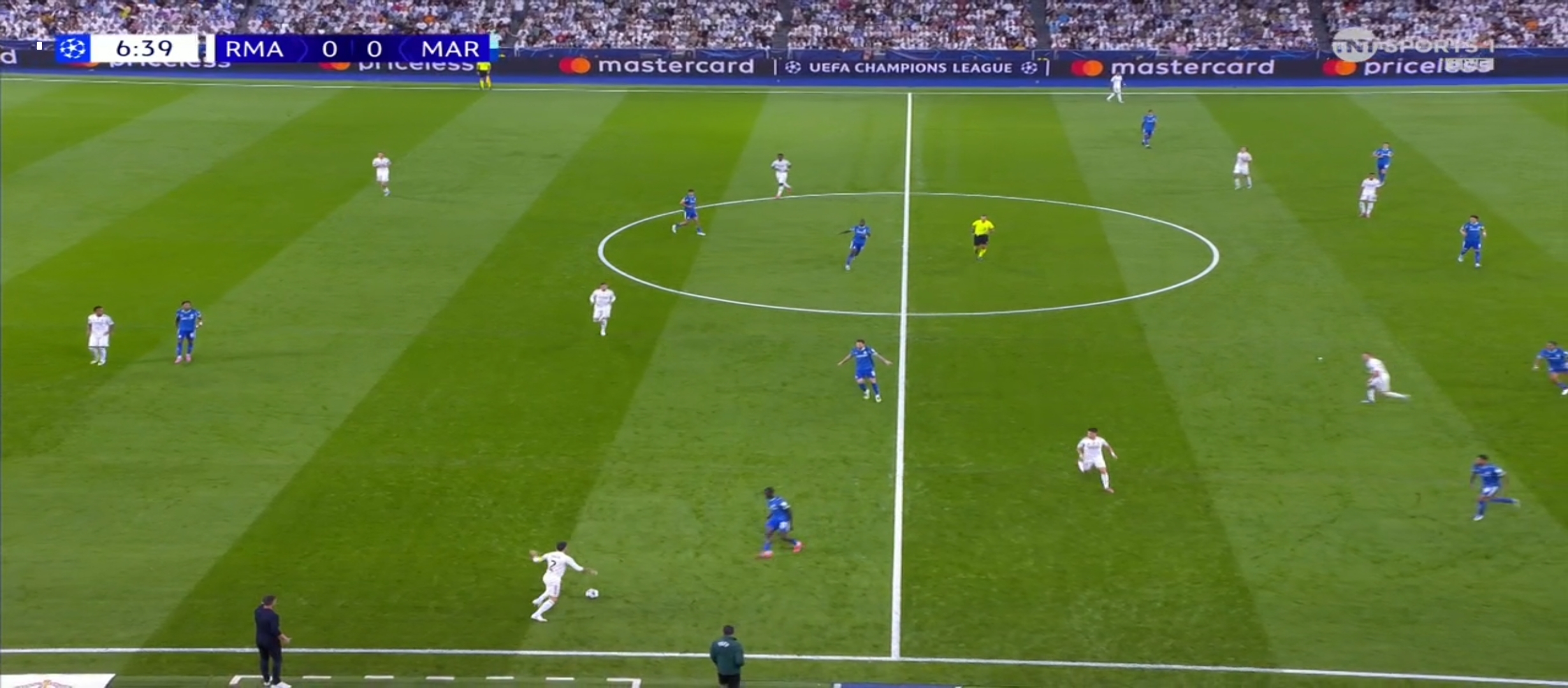 মার্সেই ডিফেন্সিভ খেলার পরিকল্পনা করেই মাঠে নামে। এইজন্যই তারা ডাবল ডিফেন্সিভ মিডফিল্ডার খেলিয়েছে। ম্যাচটা ছিল রিয়ালের ঘরের মাঠ সান্তিয়্যাগো বার্নাব্যুতে। বাংলাদেশ সময় রাত ১ টাই খেলা শুরু হয়। ম্যাচের শুরু থেকেই দুই দলই বেশ গতিশীল ফুটবল খেলছিল। ম্যাচের ৪ মিনিটের মাথায় পায়ে ব্যাথা অনুভব করে আর্নল্ড। এবং আর্নল্ড মাঠ থেকে উঠে যায়। মাঠে নামে কার্ভাহাল। যাইহোক খেলা চলতে থাকে। ম্যাচের প্রথম দিকে এমবাপ্পে দারুণ দুইটা সুযোগ পেয়ে যায়। যার মধ্যে একটা গোলকিপার সেভ দিয়ে দেয় এবং অন্যটা বাইরে যায়। অন্যদিকে অলিম্পিক মার্সেই আক্রমণ করতে থাকে। কিন্তু খুব একটা সুবিধা তারা করতে পারছিল না।