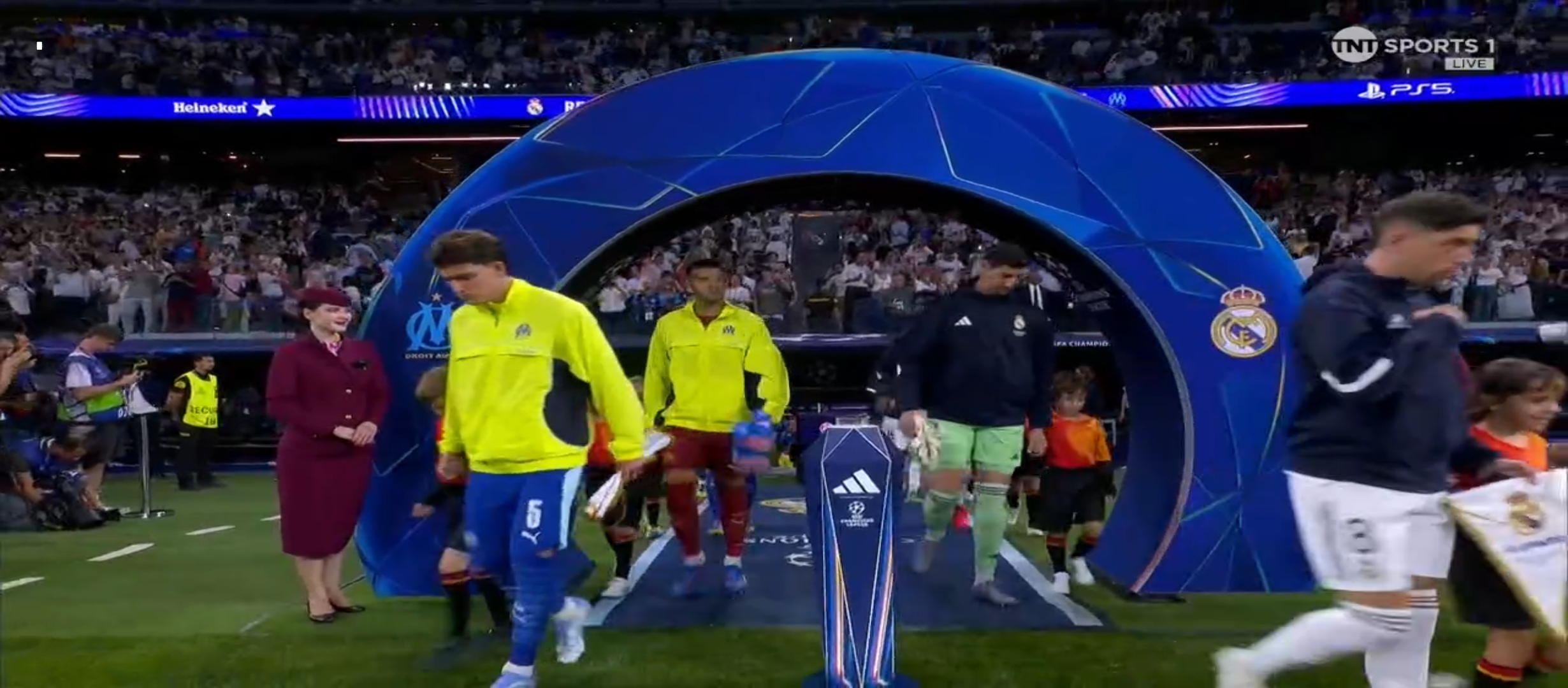 ম্যাচের তখন ২২ মিনিট গ্রিনউডের অ্যাসিস্টে গোল করে মার্সেই খেলোয়ার ওয়াআ। ০-১ গোলে এগিয়ে যায় মার্সেই। এ যেন পুরোপুরি নাটকীয় একটা ব্যাপার। গোল খাওয়ার পরে একের পর এক আক্রমণ করতে থাকে রিয়াল মাদ্রিদ। ম্যাচের ২৯ মিনিটের সময় একটা পেনাল্টি পায় রিয়াল মাদ্রিদ। পেনাল্টি থেকে সফল স্পট কিক নিয়ে গোল করে ম্যাচে সমতা নিয়ে আসে কিলিয়ান এমবাপ্পে। প্রথমার্ধে আর কোন গোল হয়নি। দ্বিতীয়ার্ধে খেলতে নেমে নিজেদের খেলার ধরণ কিছুটা পরিবর্তন করে রিয়াল মাদ্রিদ। তারা নিজেদের মধ্যে পাস খেলছিল বেশি। ম্যাচের ৭২ মিনিটের সময় লাল কার্ড পায় দানি কার্ভাহাল। ১০ দলের দলে পরিণত হয় রিয়াল মাদ্রিদ। ফলে মার্সেই আক্রমণ বেশি করতে থাকে।