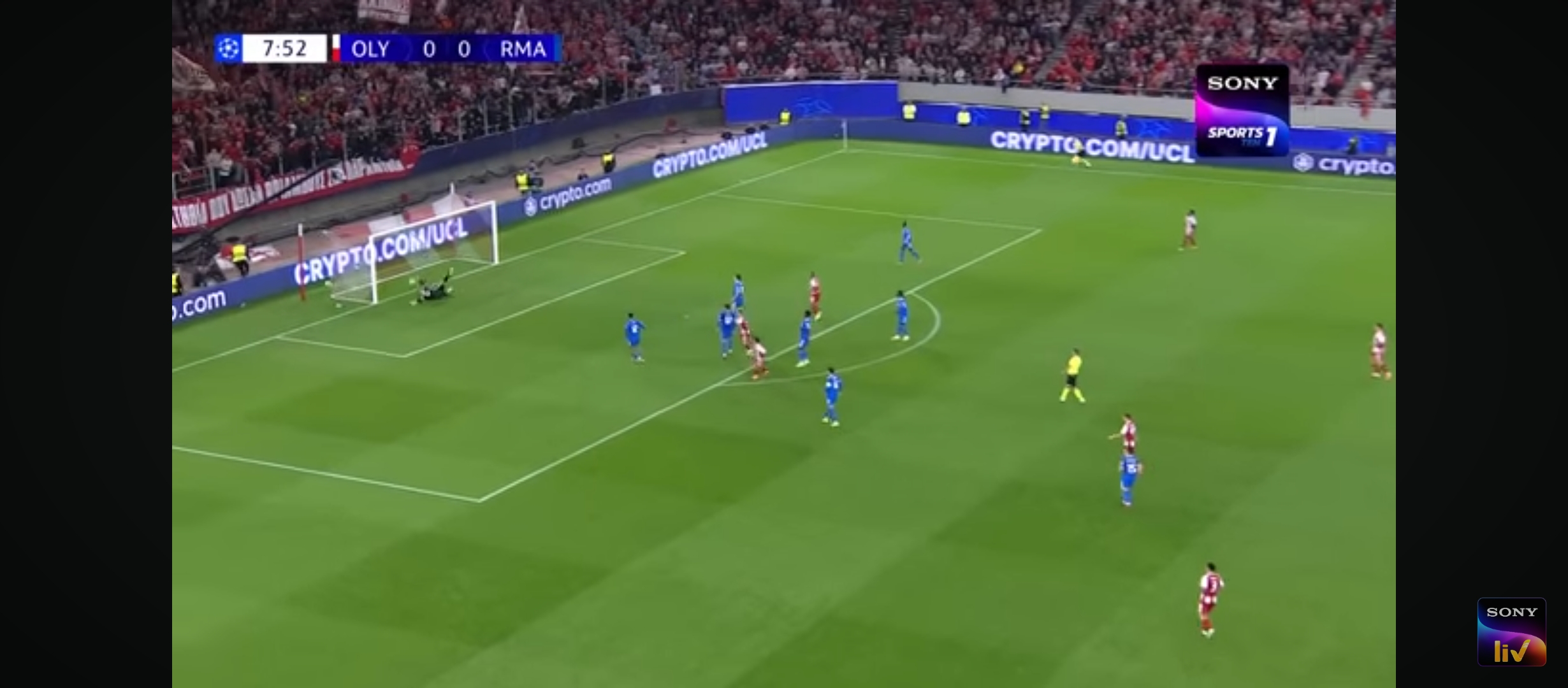 খেলাটা ছিল ওলিম্পিয়াকোস এর মাঠে। খেলা শুরু হয় বাংলাদেশ সময় রাত দুইটার সময়। খেলার শুরুতেই ম্যাচের ৭ মিনিটের মাথায় এগিয়ে যায় ওলিম্পিয়াকোস। তাদের খেলোয়ার চিকুইনহো ডিবক্সের বাইরে থেকে দারুণ এক শর্টে গোল করে। এবং দলকে এগিয়ে নিয়ে যায়। এরপর ভিনিসিয়াস দারুণ একটা শর্ট নেয়। কিন্তু গোলরক্ষক সেটা সেভ দিয়ে দেয়। এর কিছুক্ষণ পরে ম্যাচের ২২ মিনিটের সময় দারুণ এক ট্রিভেলা পাস দেয় ভিনিসিয়াস। এবং এমবাপ্পে চমৎকারভাবে রান মেক করে এবং একটা সুন্দর ফিনিশিং দেয়। ম্যাচে ১-১ সমতা চলে আসে। এর দুই মিনিট পরে আর্দা গুলার চমৎকার একটা বল দেয় এমবাপ্পের উদ্দেশ্যে। এবং এমবাপ্পে হেড দিয়ে গোল দেয়। এটা ছিল ম্যাচে কিলিয়ান এমবাপ্পের দ্বিতীয় গোল। রিয়াল মাদ্রিদ এগিয়ে যায় ১-২ গোলের ব্যবধানে।