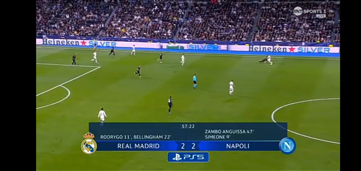মাদ্রিদে অনেক গুলো ইঞ্জুরি সমস্যা আছে। আন্তর্জাতিক বিরতিতে ইঞ্জুরিতে পড়ে দলের বাইরে রয়েছে ভিনিসিয়াস জুনিয়র। যাইহোক গতকাল রিয়াল মাদ্রিদ ৪-২-২-২ ফর্মেশনে খেলতে নামে। এবং নাপোলির ফর্মেশন ছিল ৪-৩-৩। ম্যাচের শুরুতেই মাএ ৯ মিনিটে গোল করে নাপোলি কে এগিয়ে নেয় সিমিয়নে। যদিও রিয়াল মাদ্রিদের ম্যাচে ফিরতে সময় লাগেনি। ম্যাচের ১১ মিনিটে অসাধারণ একটা শর্টে গোল করে রদ্রিগো। অসাধারণ সময় কাটছে তার রিয়াল মাদ্রিদের হয়ে। ফলাফল ১-১ গোলের সমতা দাঁড়ায়। এরপর ২২ মিনিটে ডেভিড আলাবা এর অসাধারণ অ্যাসিস্টে হেডে গোল করে জুড বেলিংহাম। এই সিজেনে এটা তার ১৫ তম গোল। রিয়াল ম্যাচে ২-১ গোলে লিড নেয়। এরপর আর কোন গোল না হলে ২-১ গোলে লিড নিয়ে বিরতিতে যায় কার্লো আনচেলওির দল। বিরতি থেকে ফিরেই ৪৭ মিনিটে গোল করে সমতায় ফেরে নাপোলি। তখন ম্যাচে আবার সমতা ফিরিয়ে নিয়ে আসে নাপোলি।