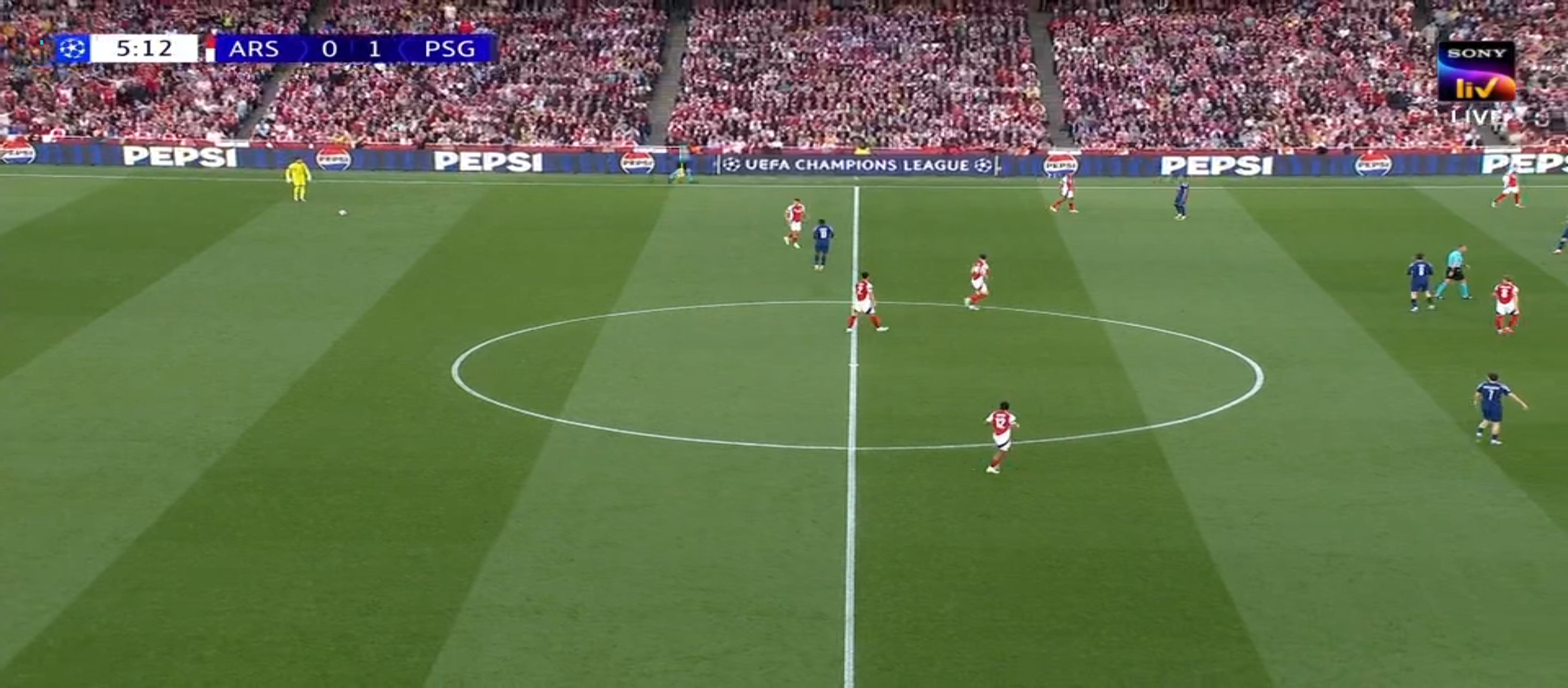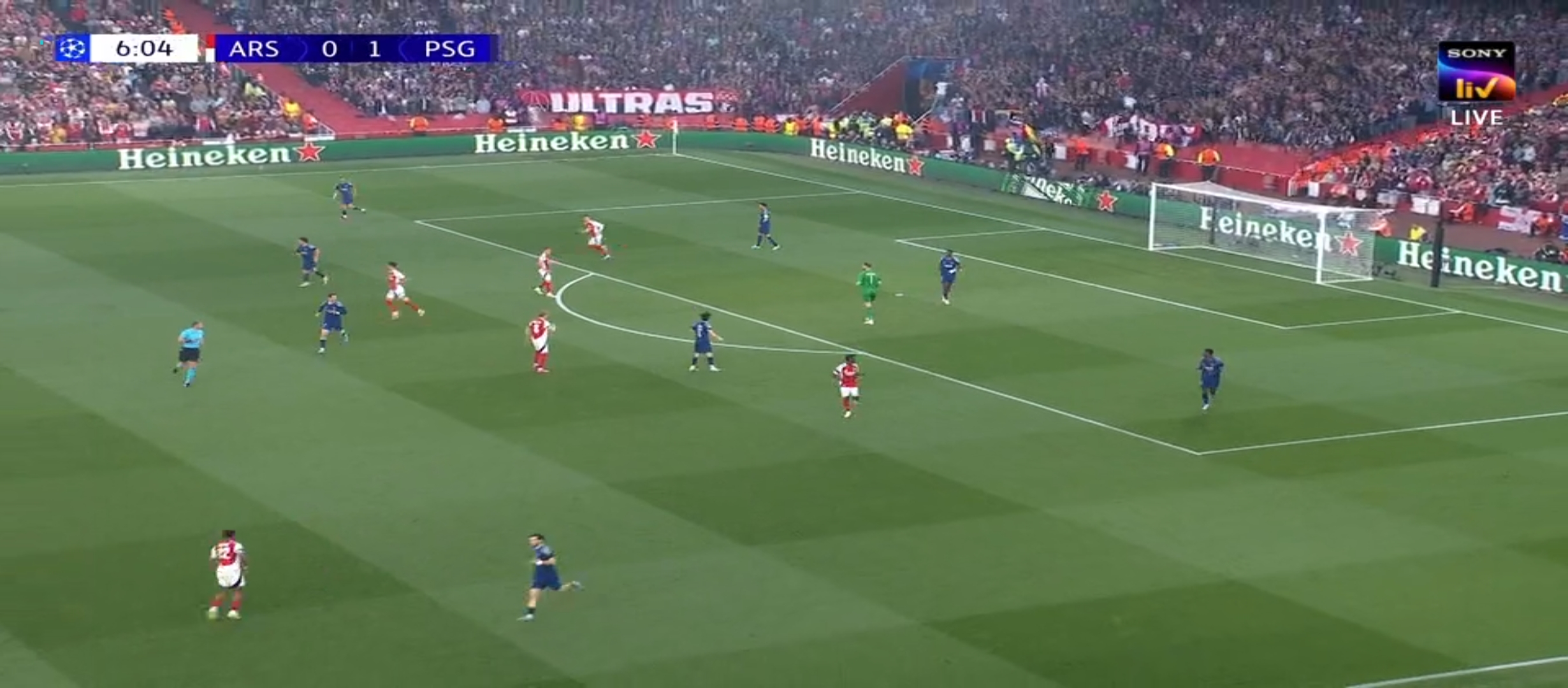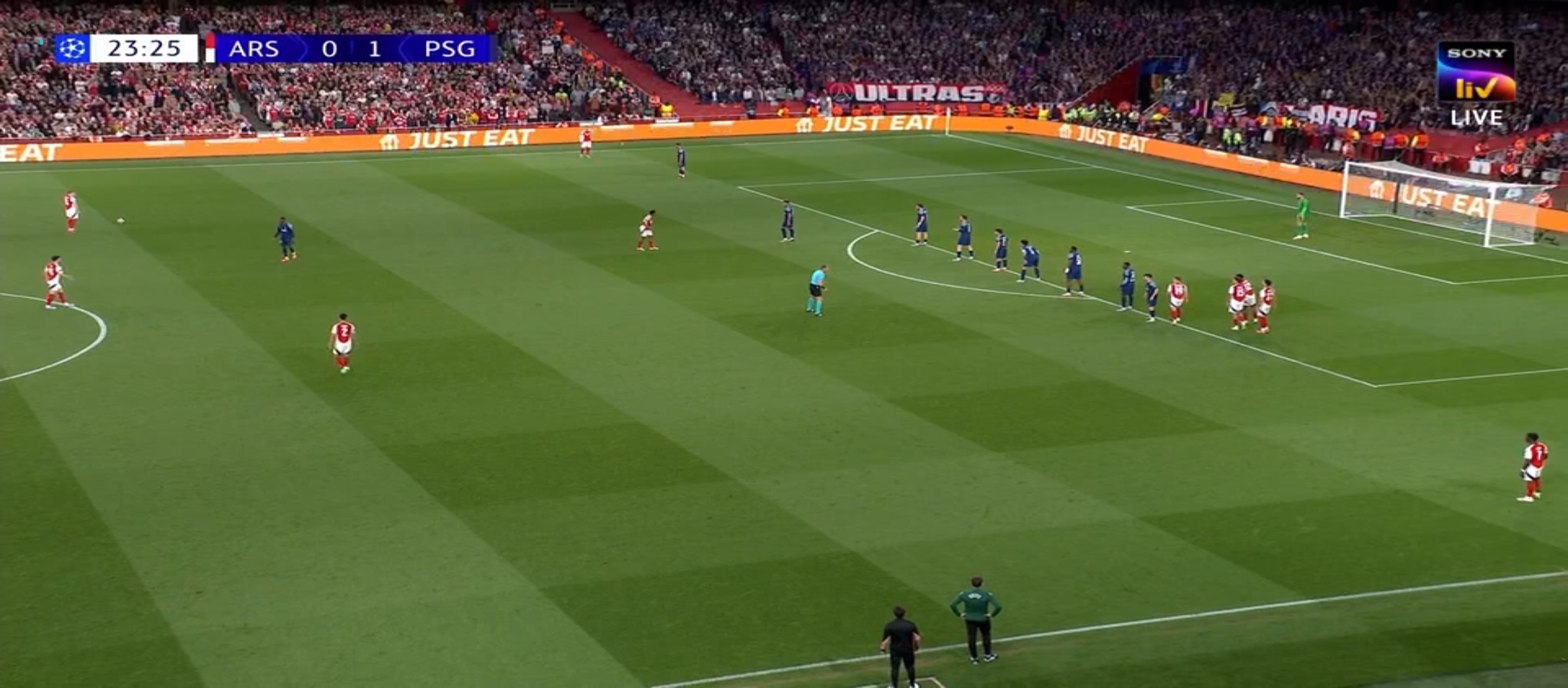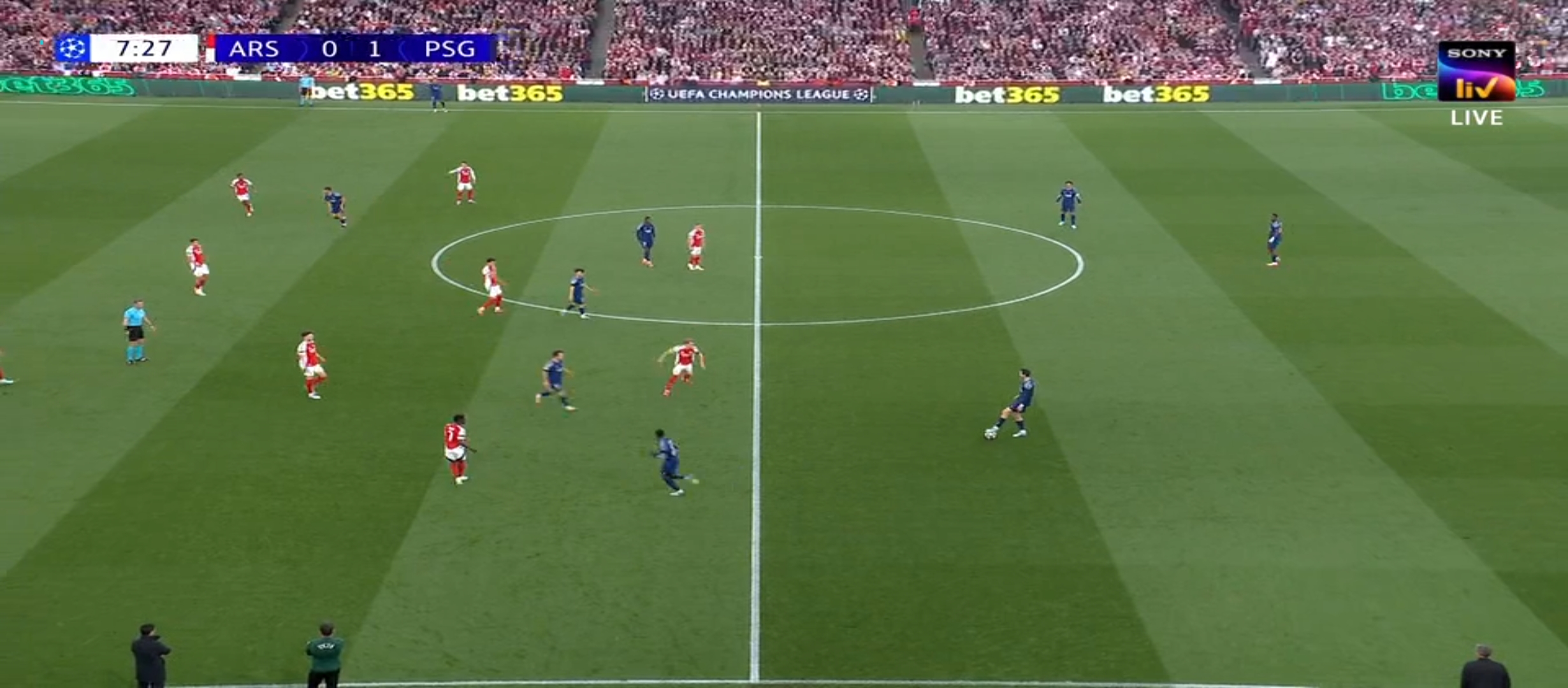 খেলাটা ছিল বাংলাদেশ সময় রাত ১ টাই। যথাসময়ে খেলা শুরু হয়। ম্যাচের শুরু থেকেই বেশ দারুণ গুছিয়ে খেলতে থাকে পিএসজি। তাদের খেলার মধ্যে একটা গতিশীলতা ছিল। এটা আমার বেশ ভালো লাগছিল। ম্যাচের ৪ মিনিট তখন। কাভারা এর অ্যাসিস্টে অসাধারণ এক ফিনিশ করে ওসমান দেম্বেলে। ০-১ গোলে এগিয়ে যায় পিএসজি। গোল দেওয়ার পরেও থেমে থাকেনি পিএসজি। একের পর এক আক্রমণ করতে থাকে। ঘরের মাঠে পিএসজির সাজানো গোছানো ফুটবলের সামনে একেবারে পরাস্ত্র হয় আর্সেনাল। আর্সেনাল চেষ্টা করলেও সেরকম কোন ভালো সুযোগ তৈরি করতে পারছিল না। প্রথমার্ধের খেলা শেষ হয় ০-১ তেই।