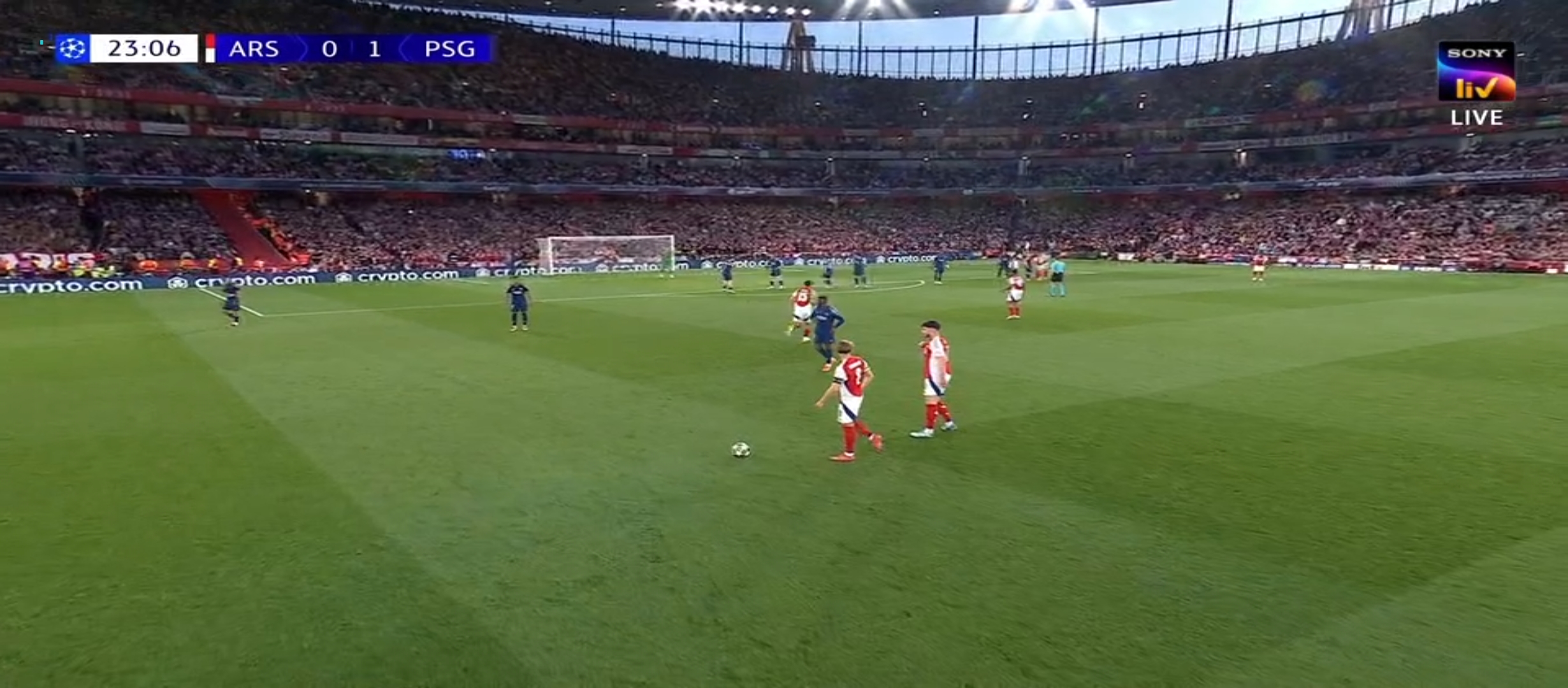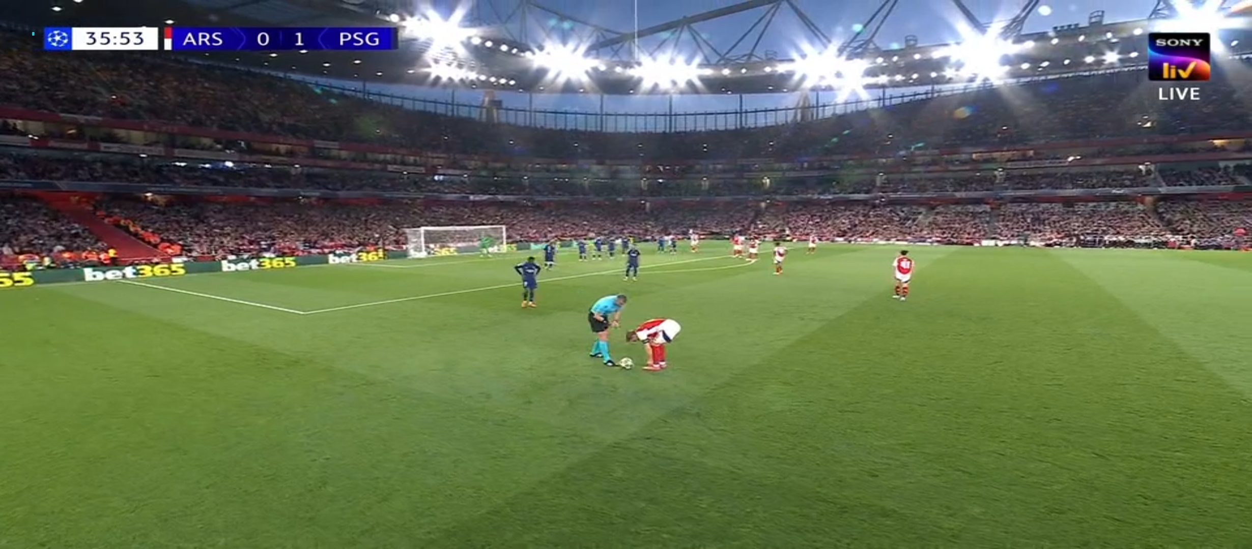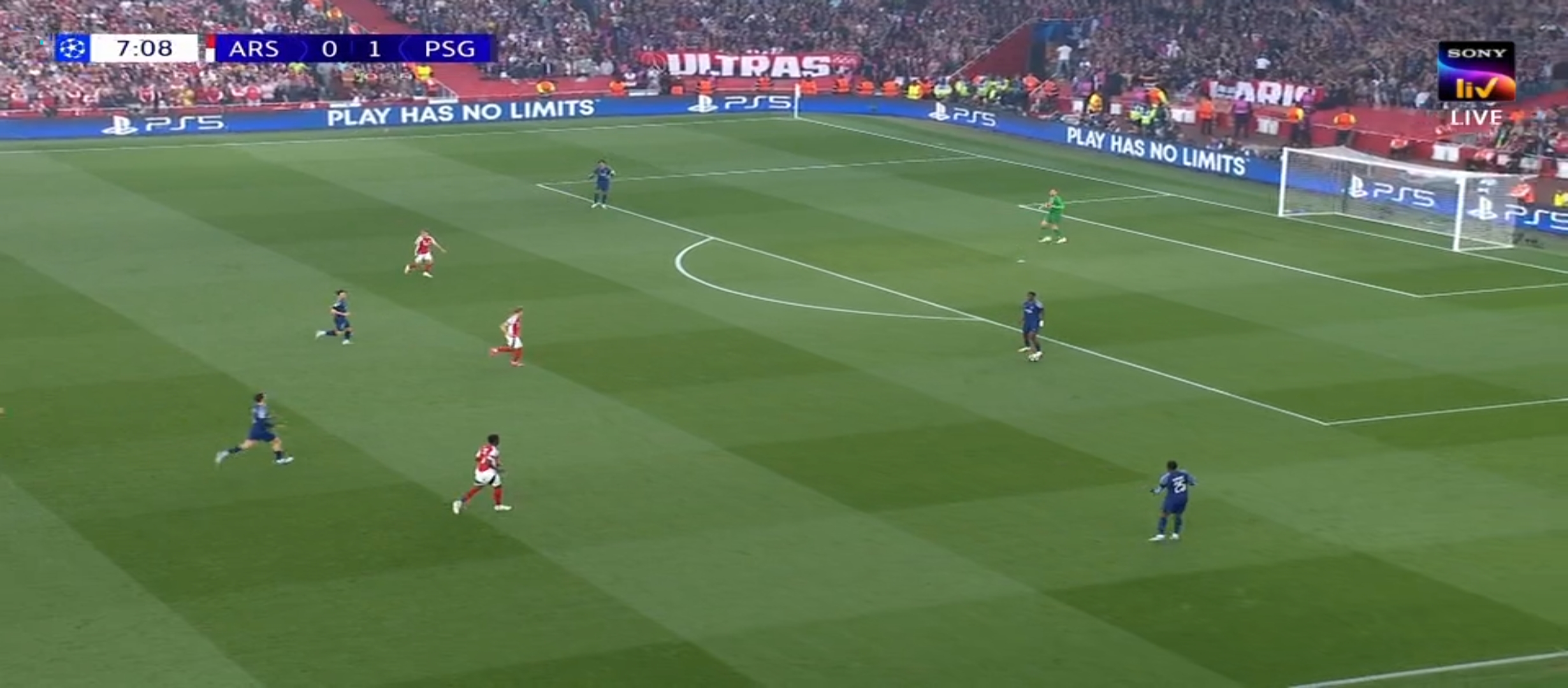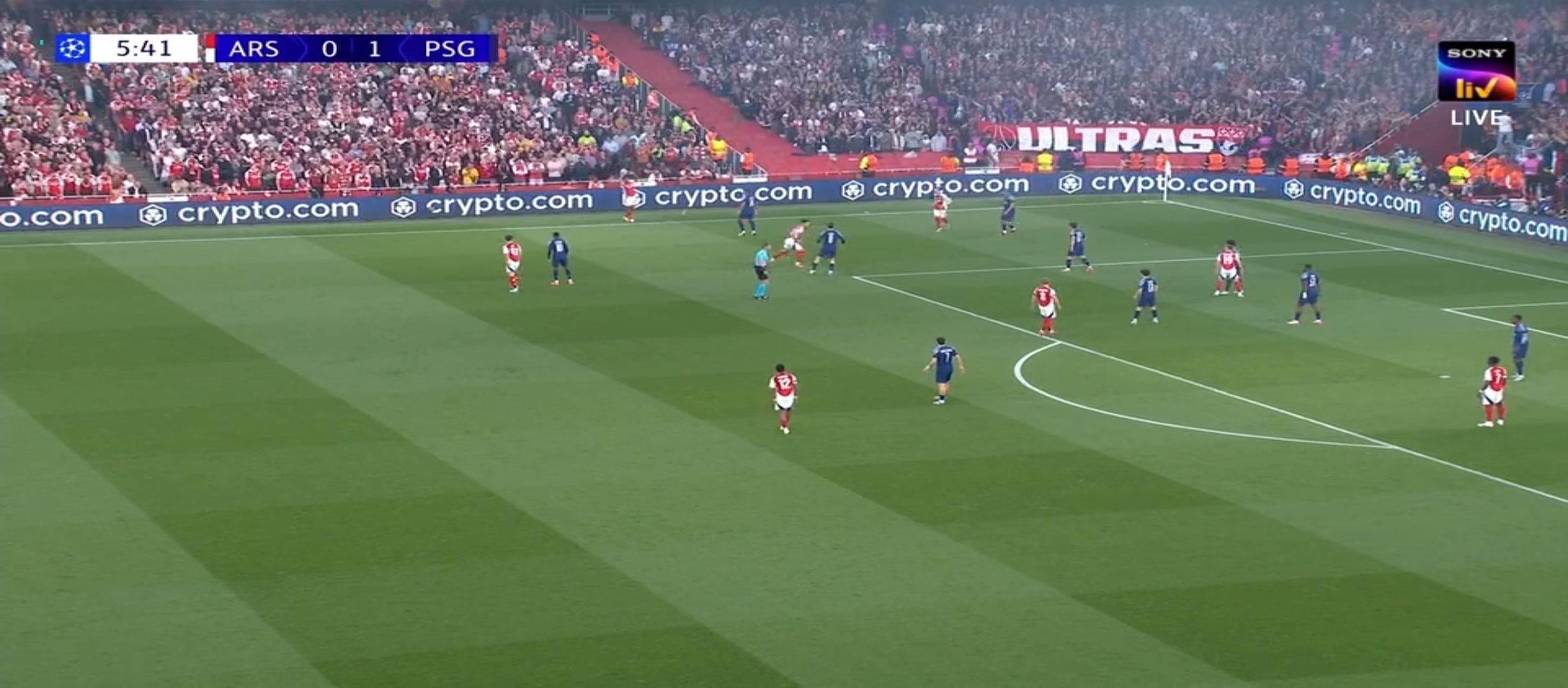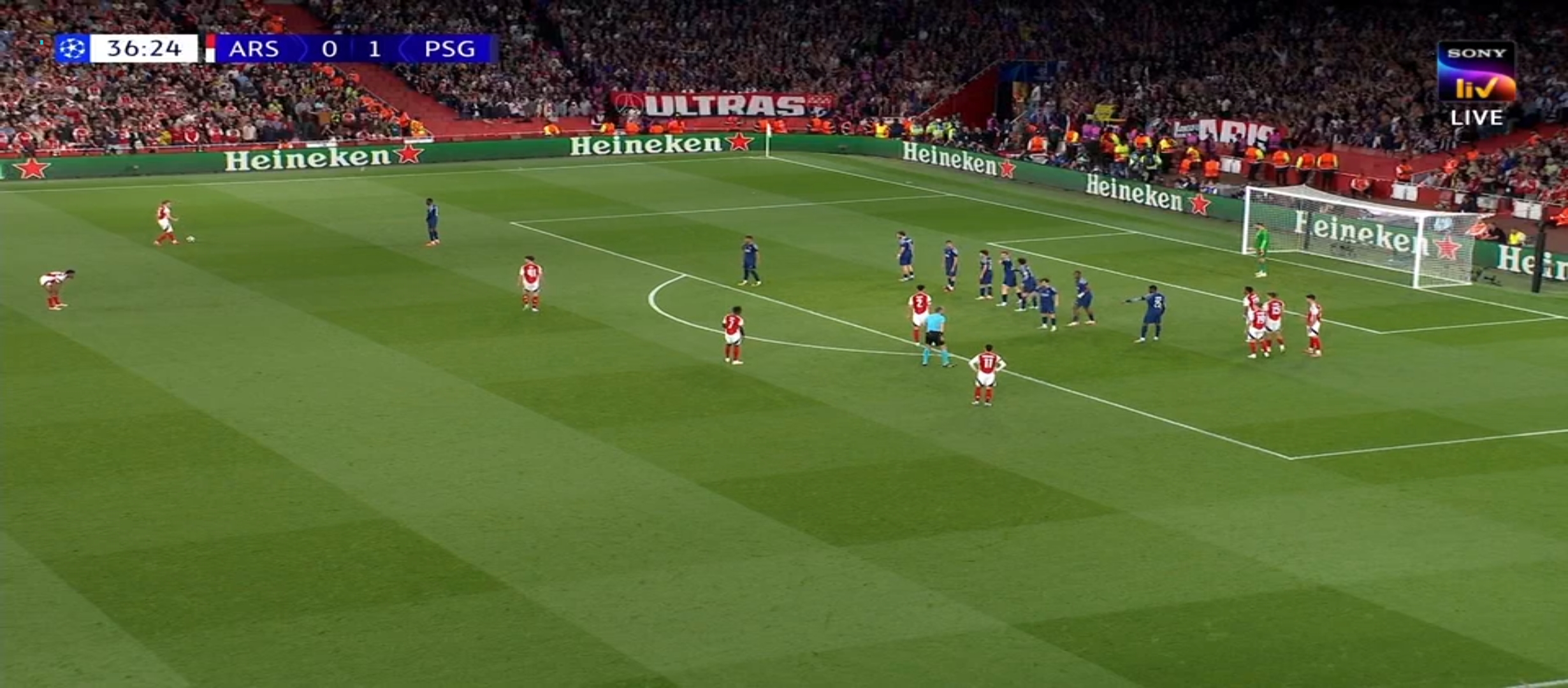 খেলাটা ছিল বাংলাদেশ সময় রাত ১ টাই। যথাসময়ে খেলা শুরু হয়। ম্যাচের শুরু থেকেই বেশ দারুণ গুছিয়ে খেলতে থাকে পিএসজি। তাদের খেলার মধ্যে একটা গতিশীলতা ছিল। এটা আমার বেশ ভালো লাগছিল। ম্যাচের ৪ মিনিট তখন। কাভারা এর অ্যাসিস্টে অসাধারণ এক ফিনিশ করে ওসমান দেম্বেলে। ০-১ গোলে এগিয়ে যায় পিএসজি। গোল দেওয়ার পরেও থেমে থাকেনি পিএসজি। একের পর এক আক্রমণ করতে থাকে। ঘরের মাঠে পিএসজির সাজানো গোছানো ফুটবলের সামনে একেবারে পরাস্ত্র হয় আর্সেনাল। আর্সেনাল চেষ্টা করলেও সেরকম কোন ভালো সুযোগ তৈরি করতে পারছিল না। প্রথমার্ধের খেলা শেষ হয় ০-১ তেই।