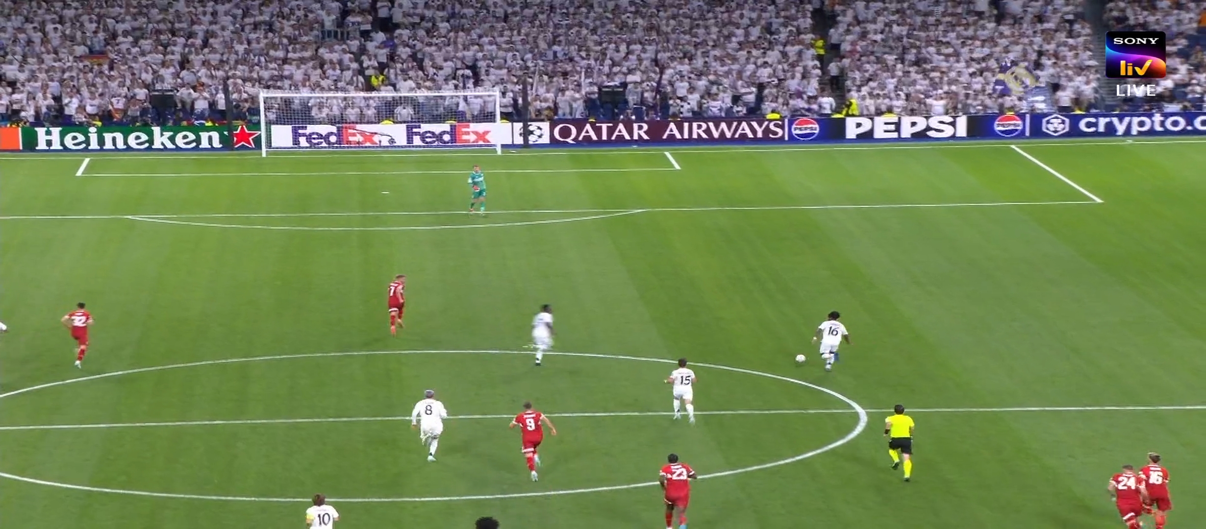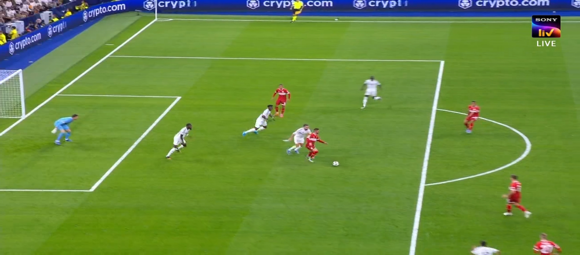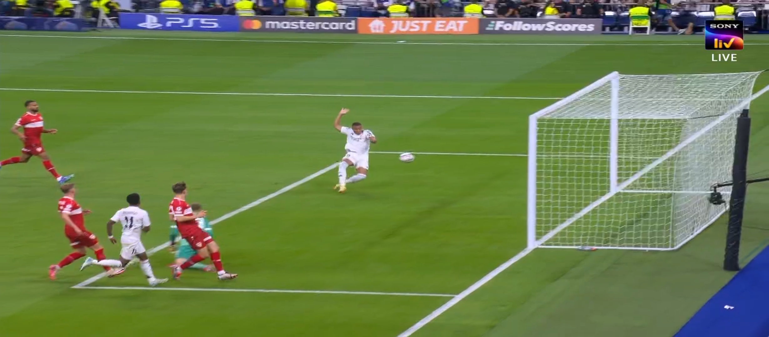 প্রথমার্ধে দুই দলই অনেক গুলো আক্রমণ করলেও শেষ পযর্ন্ত গোল করতে পারেনি কেউ। ফলে গোলশূণ্য ড্র তে শেষ হয় প্রথমার্ধের খেলা। দ্বিতীয়ার্ধে মাঠে নেমেই খেলার ধরন পাল্টে যায় রিয়াল মাদ্রিদের। দ্বিতীয়ার্ধের শুরুতেই ম্যাচের ৪৬ মিনিটে অসাধারণ একটা থ্রু পাস দেয় চুয়োমিনি। বলটা পেয়ে রদ্রিগো চলে যায় একেবারে স্টুটগার্ট এর ডিবক্সে। এরপর সুন্দর করে বলটা বাড়িয়ে দেয় এমবাপ্পের দিকে। বাকি কাজটা এমবাপ্পে খুব সহজেই করে ফেলে। ১-০ গোলে এগিয়ে যায় রিয়াল মাদ্রিদ। এরপর আবার স্টুটগার্ট আক্রমণ করতে থাকে। তারই ধারাবাহিকতায় ম্যাচের ৬৮ মিনিটে উনদাভ এর অসাধারণ গোলে সমতায় ফেরে স্টুটগার্ট। ম্যাচে তখন ১-১ এর সমতা। কার্লো আনচেলওি বেশ কিছু পরিবর্তন নিয়ে আসে। পরিবর্তনের ফলে পাল্টে যায় রিয়াল মাদ্রিদের খেলা।