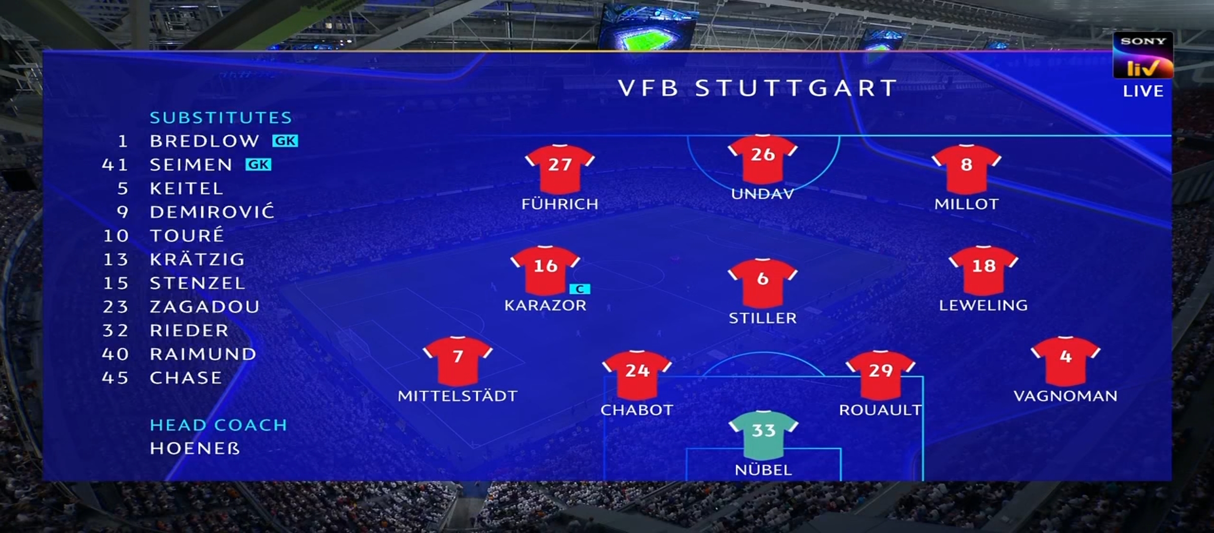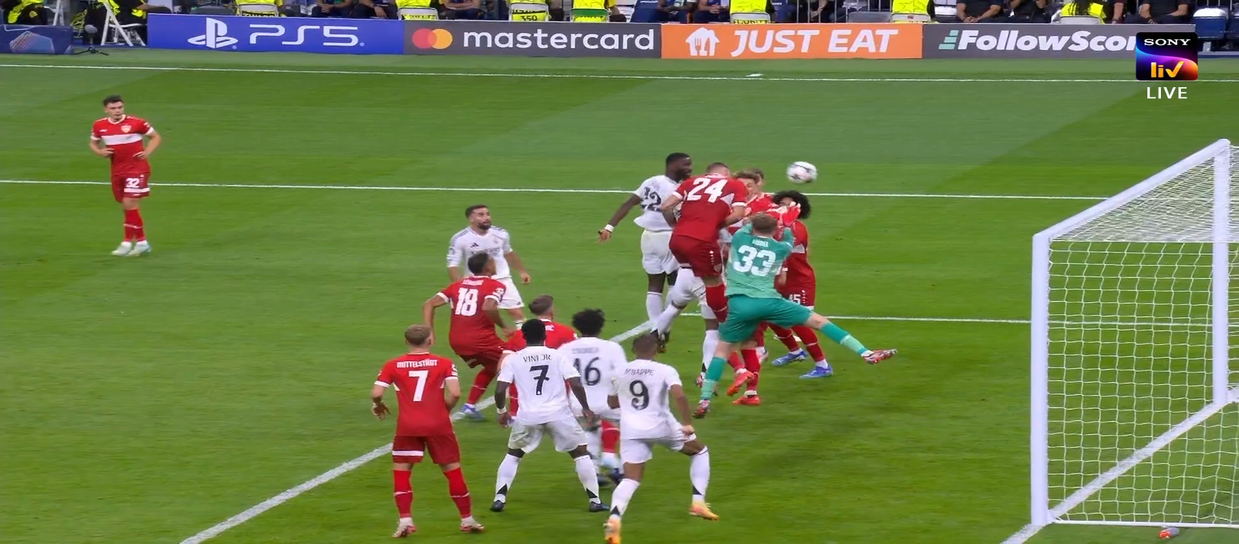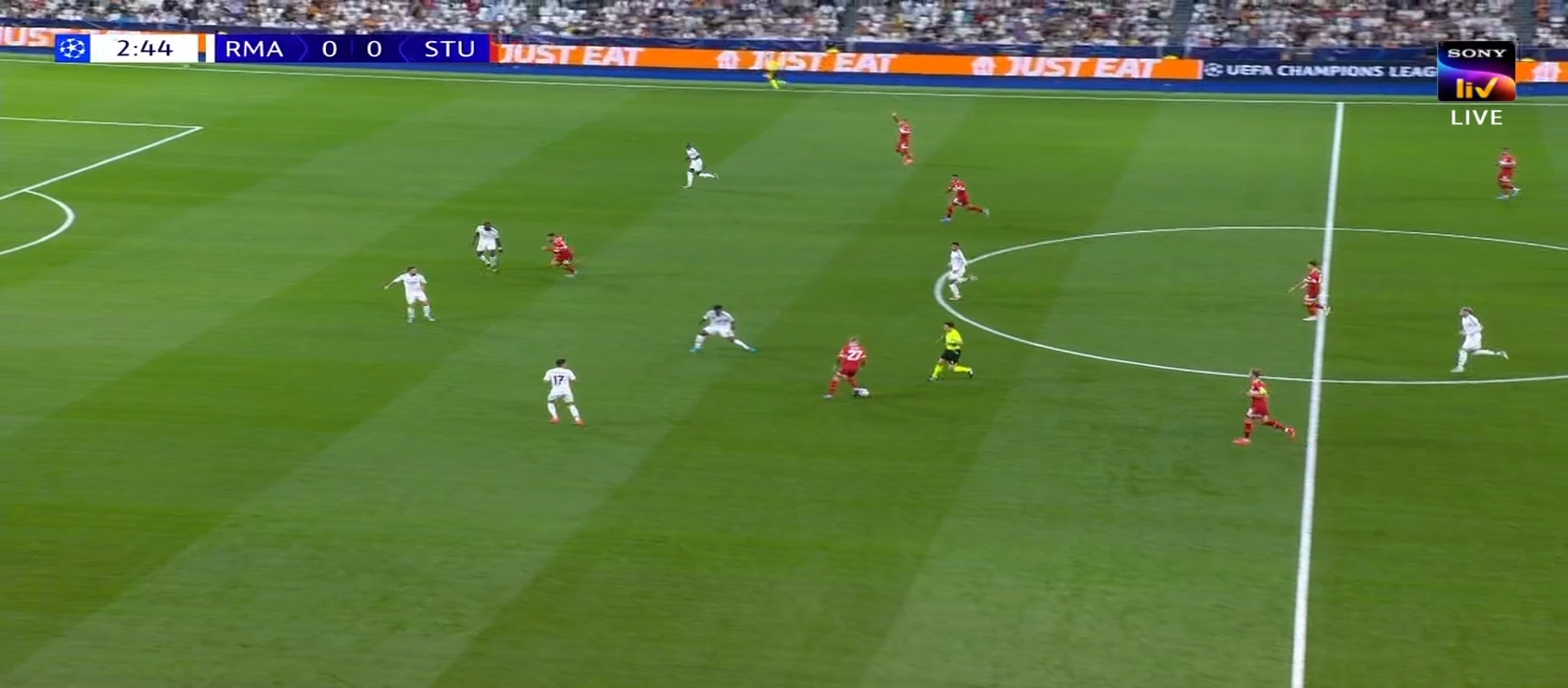 রিয়াল মাদ্রিদের ম্যাচ ছিল ভিএফবি স্টুটগার্ট এর সাথে। এটা জার্মানির একটা ক্লাব। রিয়াল মাদ্রিদ কোচ কার্লো আনচেলওি তার দলকে মাঠে নামায় ৪-৪-২ ফর্মেশনে অন্যদিকে স্টুটগার্ট এর ফর্মেশন ছিল ৪-৩-৩। খেলা শুরু হয়। প্রথম থেকেই আধিপত্য বিস্তার করে স্টুটগার্ট। নামের বিচারে অনেক পিছিয়ে থাকলেও অসাধারণ খেলা দেখাতে থাকে তারা। ফলাফল বেশ কিছু দারুণ সুযোগ পেয়ে যায়। কিন্তু বাঁধা হয়ে দাঁড়ায় রিয়াল মাদ্রিদ গোলকিপার কর্তোয়া। ম্যাচে রিয়াল মাদ্রিদ তেমন সুবিধা করতে না পারলেও স্টুটগার্ট প্রতিনিয়ত আক্রমণ করছিল। কিন্তু কর্তোয়ার অসাধারণ নৈপুণ্যে তারা কোন গোল পাইনি। পরবর্তীতে রিয়াল মাদ্রিদ দারুণ কিছু সুযোগ তৈরি করলেও গোল করতে পারেনি। ম্যাচের ৩৩ মিনিটে স্টুটগার্ট খেলোয়ার ডিবক্সের মধ্যে রুডিগের কে ফাউল করলে পেনাল্টি দেয় রেফারি। কিন্তু পরবর্তীতে ভিএআর চেক করে পেনাল্টি বাতিল করে দেওয়া হয়।