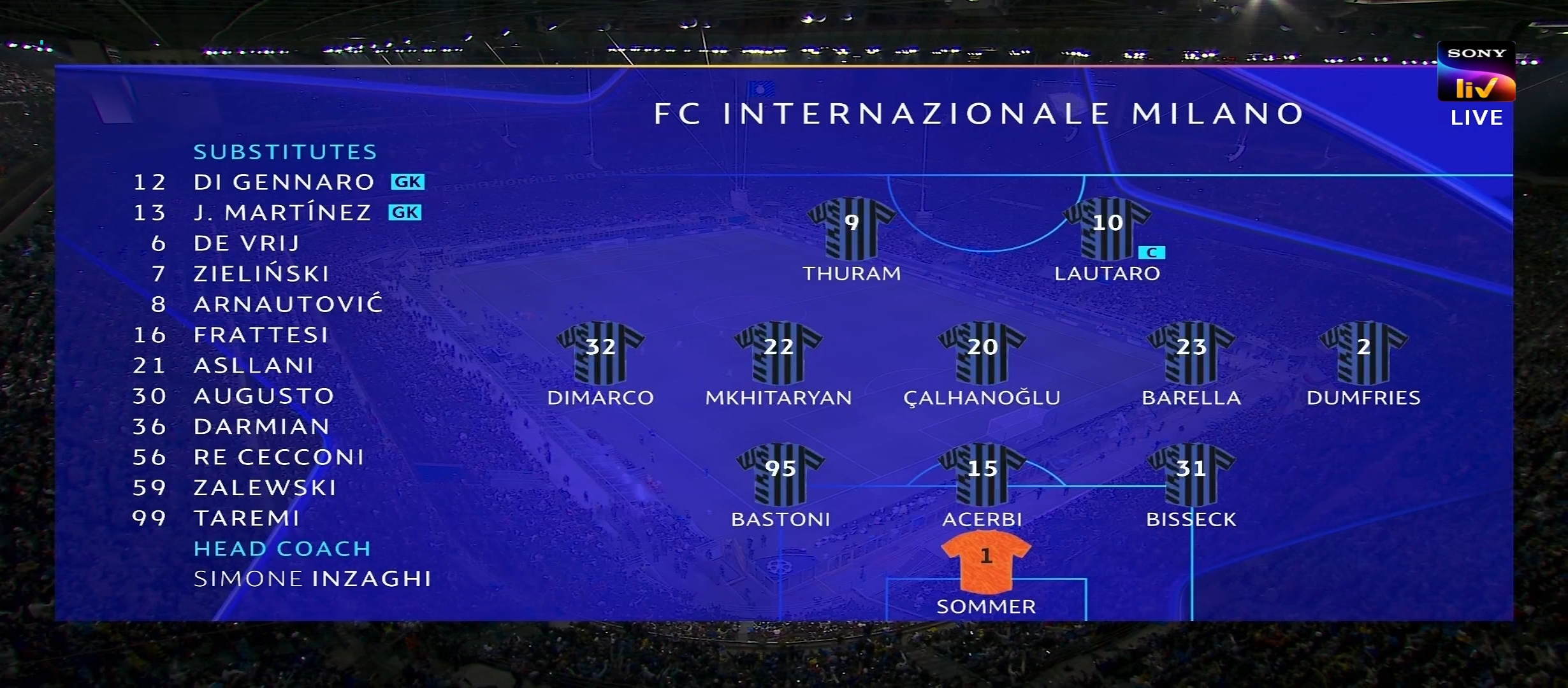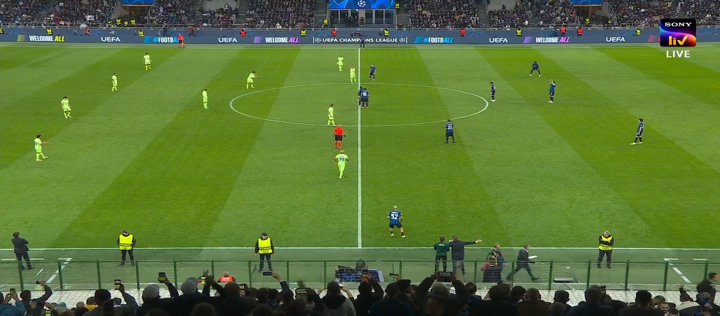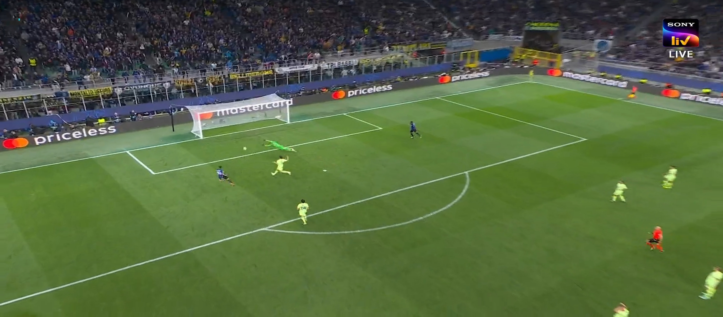ম্যাচের প্রথম দিকে ইন্টার মিলান বেশ ভালো খেলছিল। অধিকাংশ বল নিজেদের দখলে রেখে আক্রমণ করছিল একটা চাপ সৃষ্টি করছিল। ম্যাচের ২১ মিনিটে লাউতারো মার্টিনেজ গোল করে এবং ইন্টার মিলানকে ১-০ এগিয়ে নিয়ে যায়। এর মাঝে বার্সেলোনা কিছু আক্রমণ করলেও কোন লাভ হয়নি। ম্যাচের ৪৪ মিনিটে ডিবক্সের মধ্যে লাউতারো কে গুরুতর ফাউল করলে পেনাল্টি পেয়ে যায় ইন্টার মিলান। পেনাল্টি থেকে দারুণ একট স্পট কিক নেয় চাহানুলু। এবং গোল করে ইন্টার মিলানকে ২-০ গোলে এগিয়ে নিয়ে যায়। দুই লেগ মিলিয়ে ম্যাচের ফলাফল তখন ৫-৩। প্রথমার্ধের বাকি সময়ে বেশ কিছু আক্রমণ বার্সেলোনা করেছিল কিন্তু কোন লাভ হয়নি। শেষ পযর্ন্ত গোল করতে পারেনি। শেষ হয় প্রথমার্ধের খেলা।