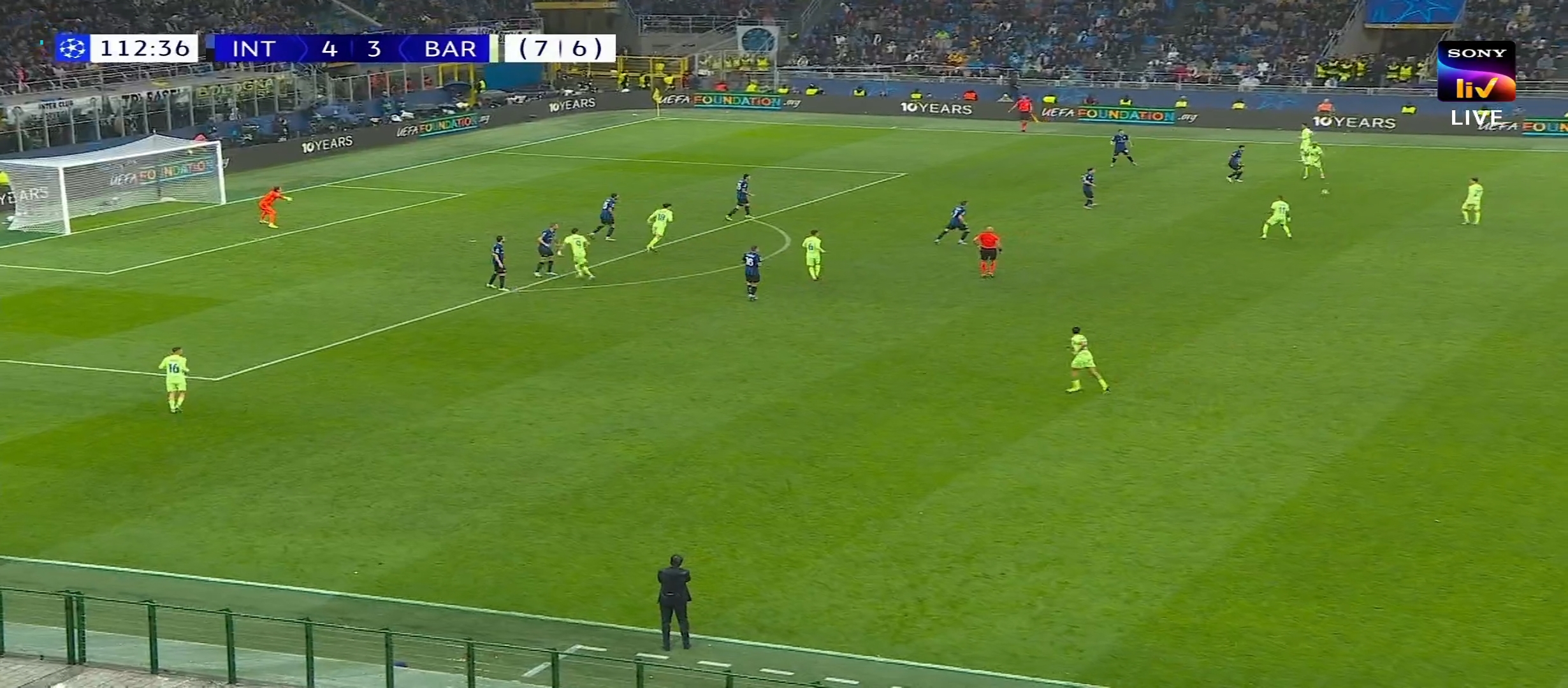 ম্যাচে ৩-৩(৬-৬) গোলের সমতা। ম্যাচ চলে যায় অতিরিক্ত সময়ে। অতিরিক্ত সময়ের ৯৯ মিনিটে ইন্টারের হয় ফারেতেছি গোল করলে এগিয়ে যায় ইন্টর মিলান। ম্যাচে তখন ইন্টার ৪-৩ বার্সেলোনা। ম্যাচের বাকি সময়ে একের পর এক আক্রমণ। অসাধারণ সব সুযোগ তৈরি করে বার্সেলোনা। কিন্তু কোন লাভ হয়নি। ইন্টারের গোলকিপার এইদিন ছিল এককথায় অপ্রতিরোধ্য। সে অসাধারণ সব সেভ দিয়ে ইন্টারকে ম্যাচে রাখে। অনেক আক্রমণ করলেও শেষ পযর্ন্ত কোন লাভ হয়নি। শেষ হয় ১২০ মিনিটের খেলা। দুই লেগ মিলিয়ে এগ্রিগ্রেডে পুরো ৭-৬ গোলের জয় নিয়ে মাঠ ছাড়ে ইন্টার মিলান এবং তারা ফাইনালে পৌছে যায়। দ্বিতীয় সেমিফাইনালে আজ মুখোমুখি হবে আর্সেনাল এবং পিএসজি।
