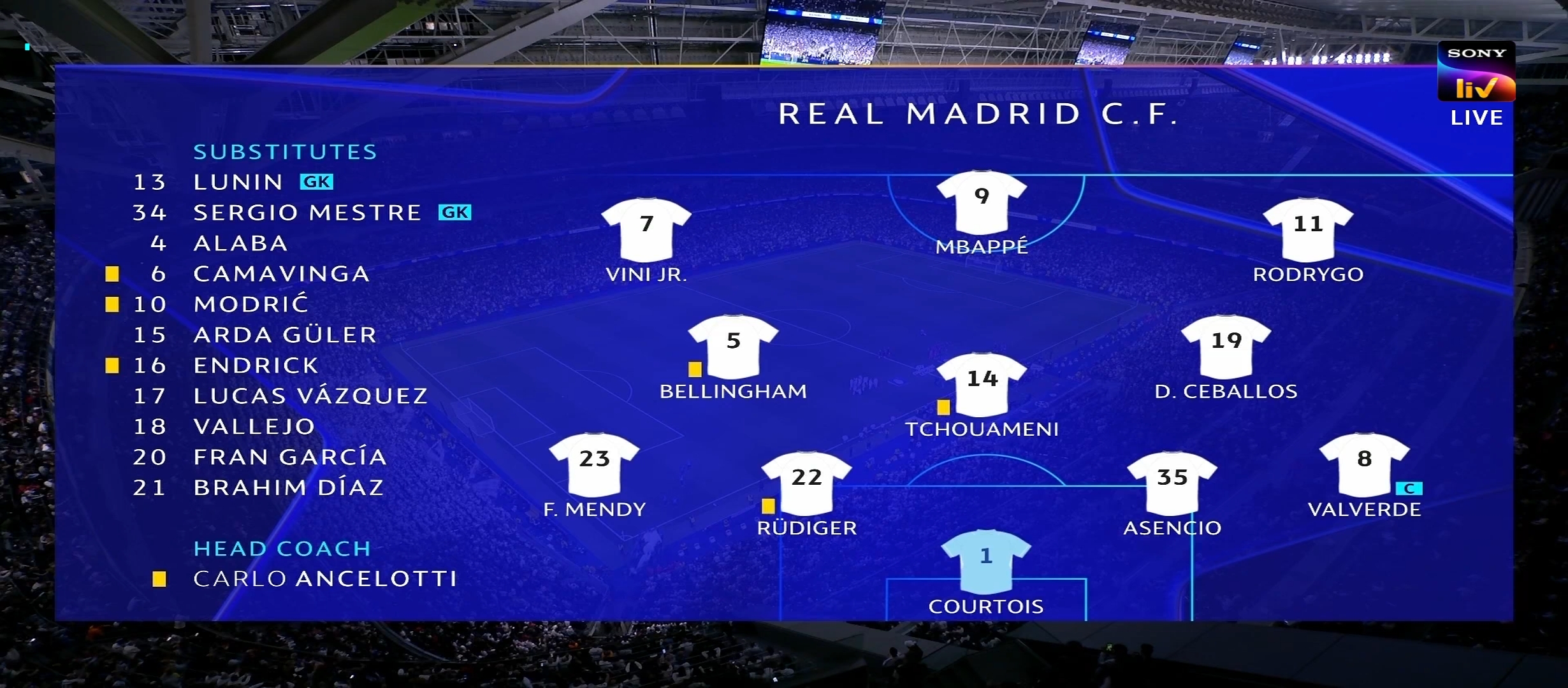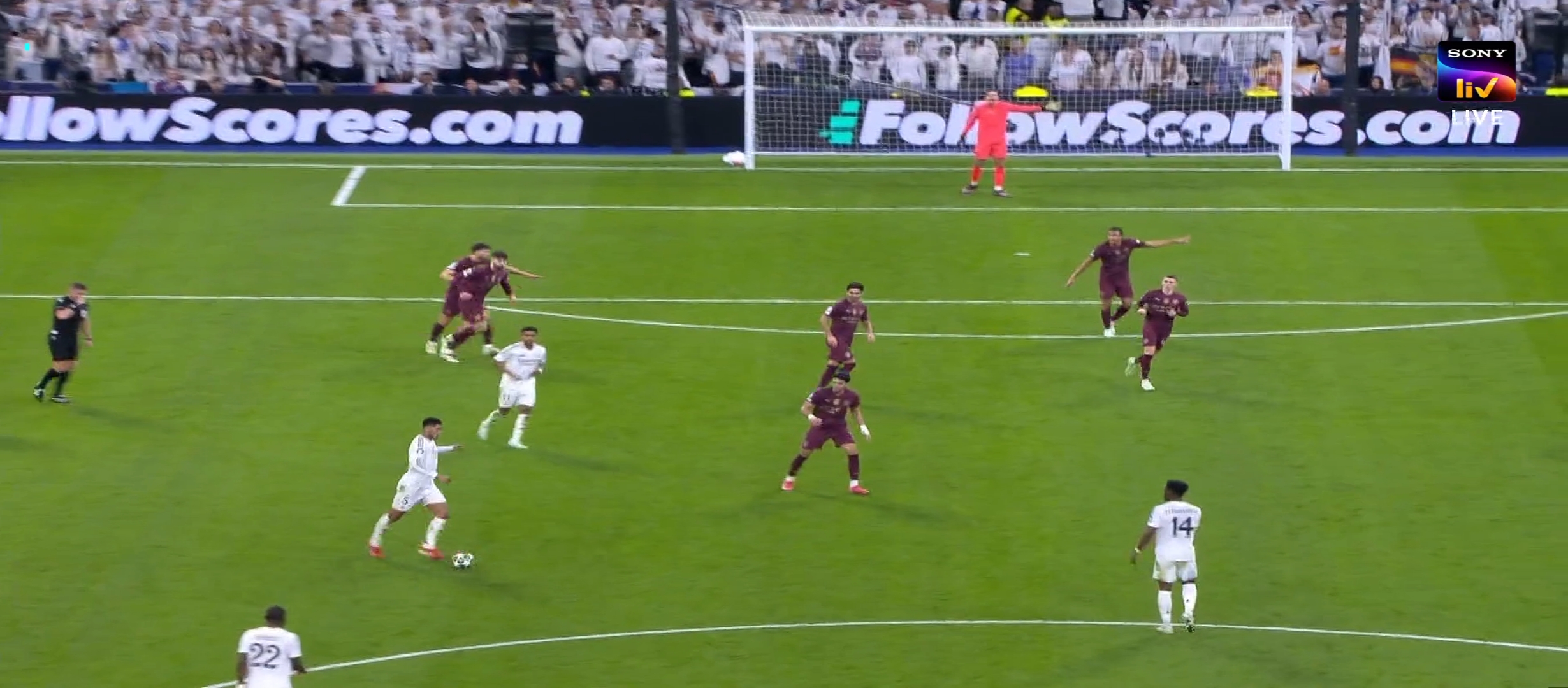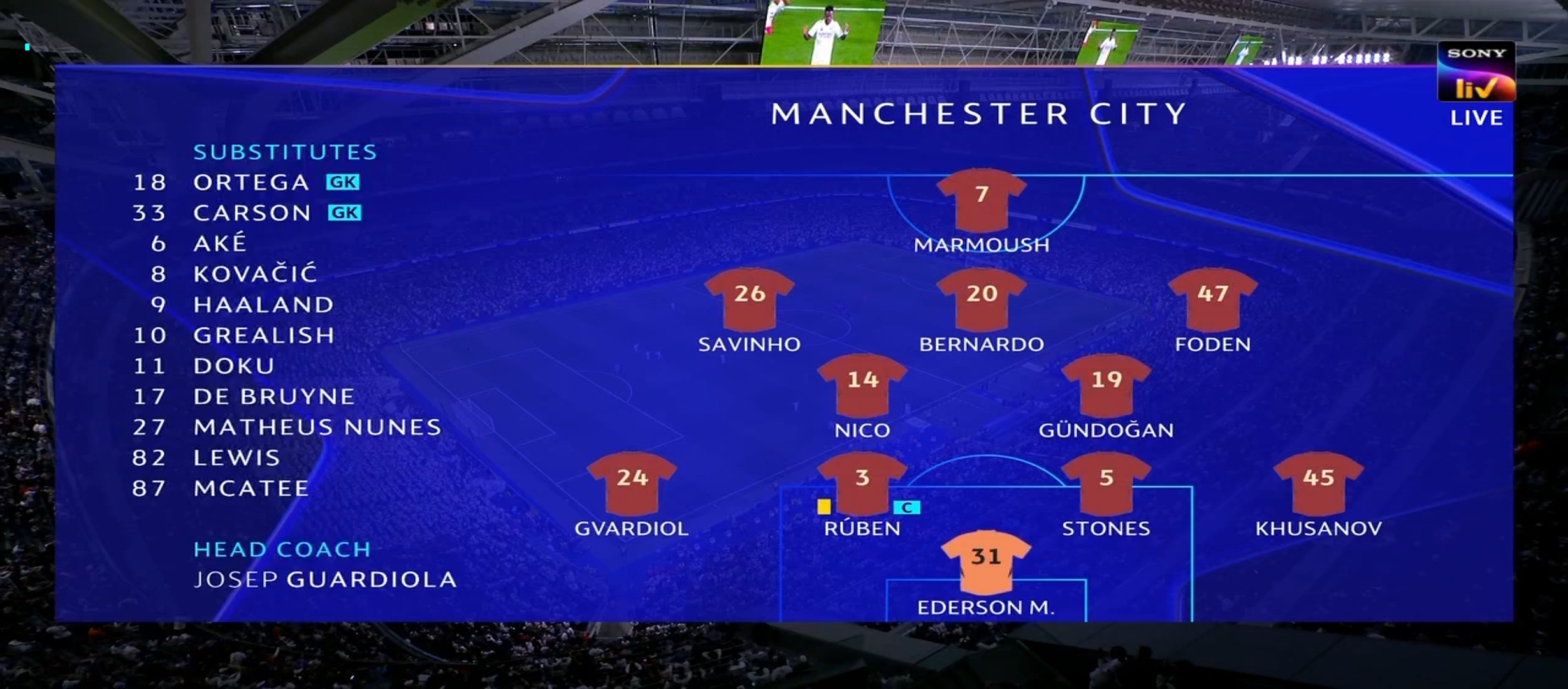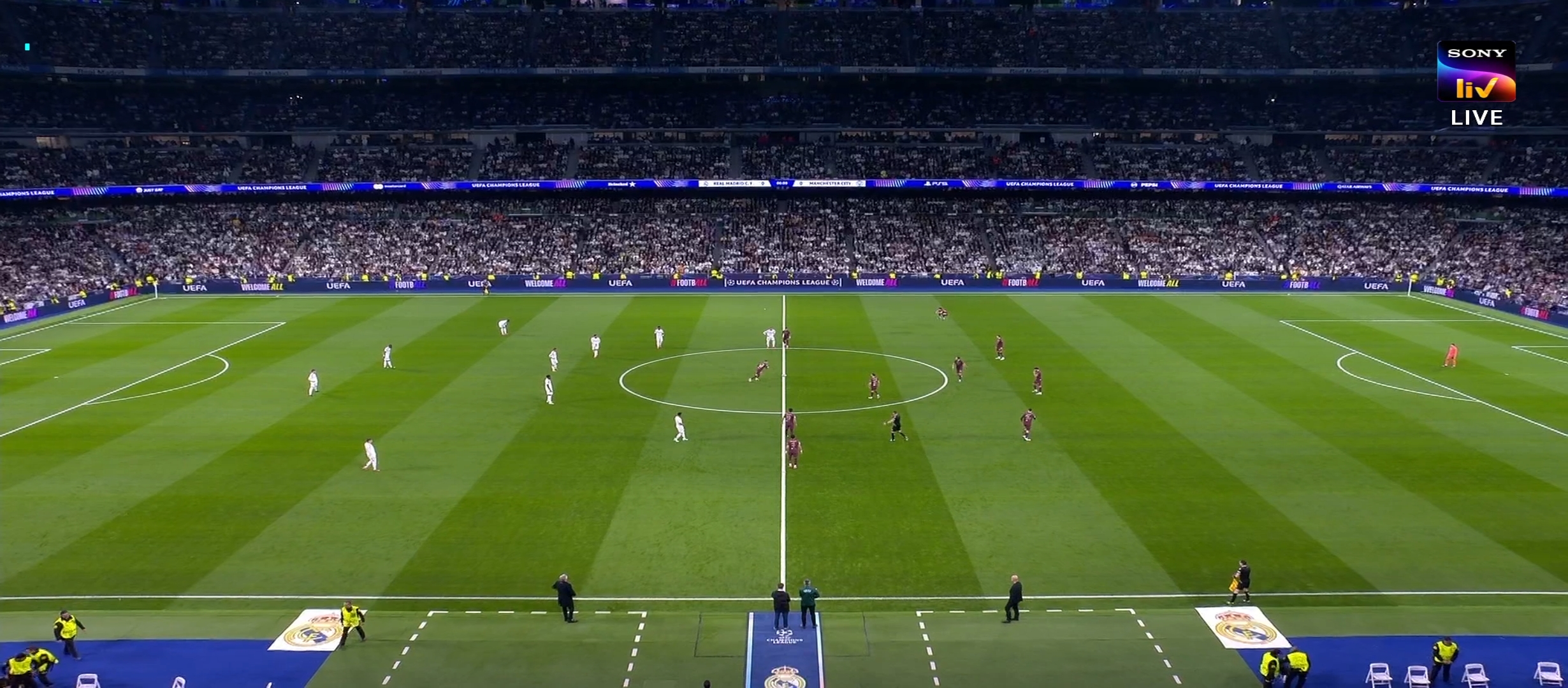 অন্যদিকে সিটি কোচ গার্দিওয়ালা সবাইকে অবাক করে তার দলের সেরা গোল স্কোরার হ্যালান্ডকে রেখেছিল শুরুর একাদশের বাইরে। রিয়াল মাদ্রিদ ৪-৩-৩ ফর্মেশনে মাঠে নামে। অন্যদিকে সিটির ফর্মেশন ছিল ৪-৪-২। ম্যাচের শুরুতে নিজেদের দখলে বল রাখছিল ম্যানচেস্টার সিটি। এবং চেষ্টা করছিল অনবরত আক্রমণে যাওয়ার। ম্যাচের ৪ মিনিটে একটা লং বল দেয় রাহুল অ্যাসেনসিও। ঐ বল থেকে দারুণ এক ফিনিশ করে কিলিয়ান এমবাপ্পে। এমবাপ্পের অসাধারণ ফিনিশিং এ ১-০ গোলে এগিয়ে যায় রিয়াল মাদ্রিদ। এরপর খেলা আবার চলতে থাকে। ম্যান সিটি চেষ্টা করছিল আক্রমণে যাওয়ার কিন্তু খুব একটা সাহায্য করতে পারছিল না। অন্যদিকে রিয়াল মাদ্রিদ বল পেলেই কাউন্টার অ্যাটাক করছিল। এইদিন ম্যানচেস্টার সিটির খেলার মধ্যে ঐ ব্যাপার টা ছিল না।