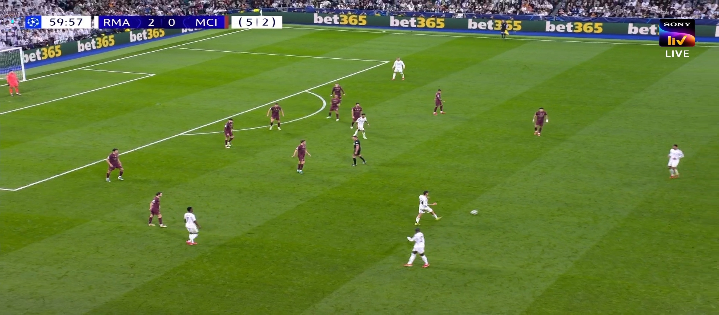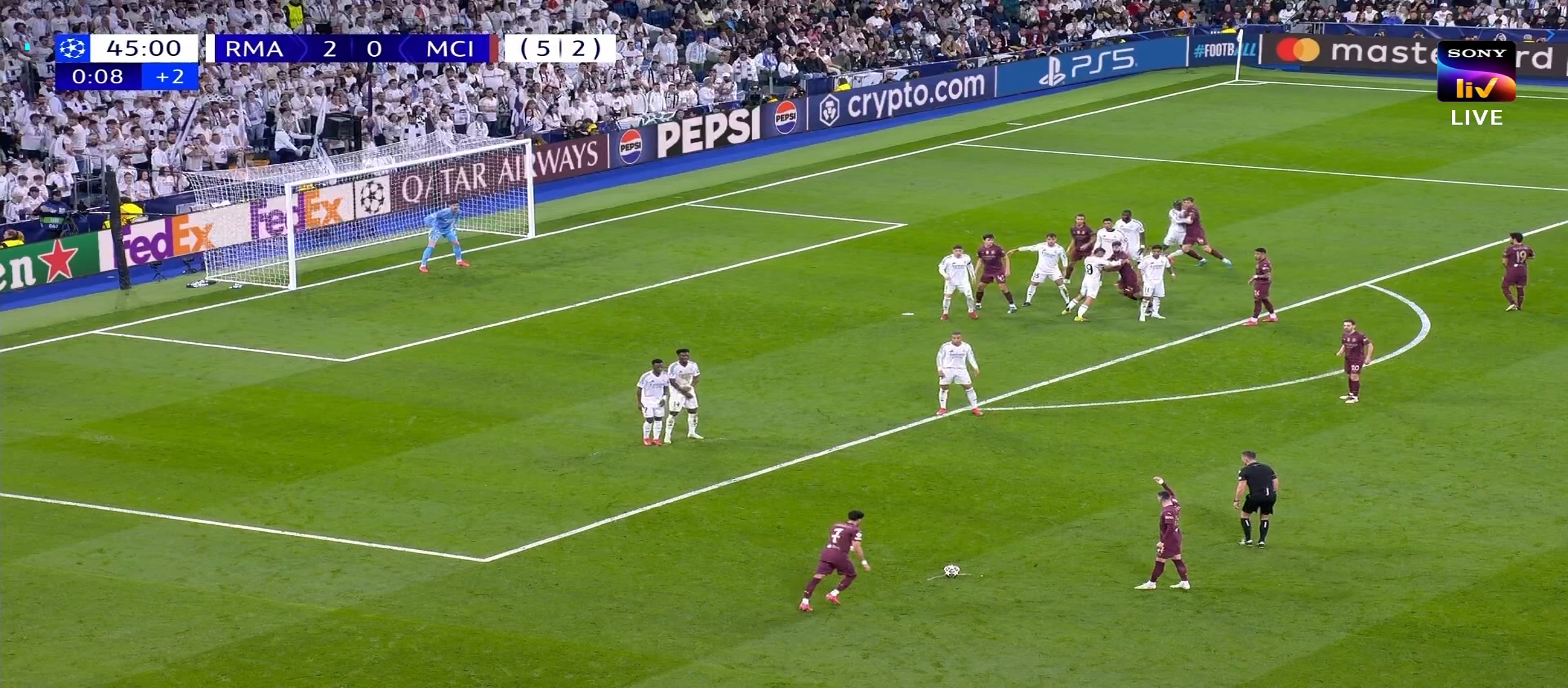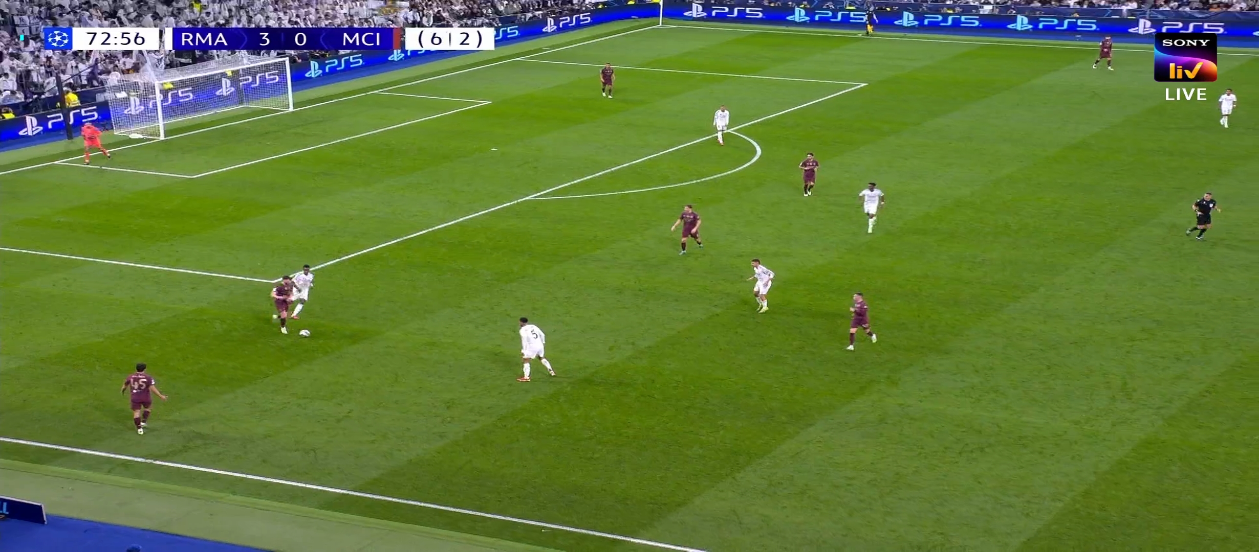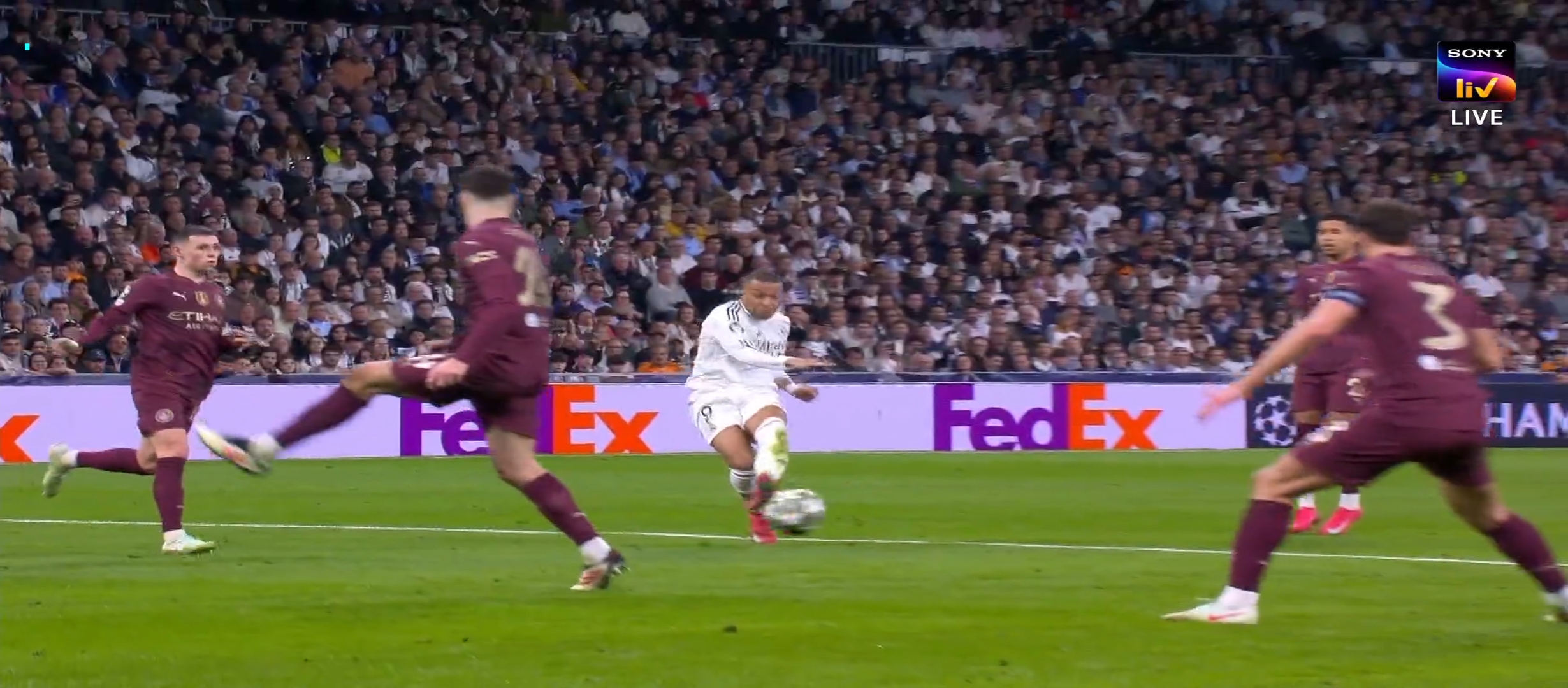 ম্যাচের ৩৩ মিনিটের খেলা চলছে। বেলিংহাম ভিনিকে উদ্দেশ্য করে দারুণ একটা বল দেয়। ভিনি বলটা মাইনাস করে রদ্রিগোর উদ্দেশ্য। রদ্রিগো বলটা হালকা টাচে দিয়ে দেয় এমবাপ্পের কাছে। সিটি ডিবক্সে এমবাপ্পে দারুণ এক ফিনিশিং দেয়। এই ফিনিশিং এ পুরোপুরি ২-০ গোলে এগিয়ে যায় রিয়াল মাদ্রিদ। আগের ম্যাচের রেজাল্ট সহ রিয়াল মাদ্রিদ এগ্রিগ্রেডে তখন ৫-২ গোলে এগিয়ে। ততক্ষণে রিয়াল মাদ্রিদের জয় নিশ্চিত হয়ে গিয়েছে। প্রথমার্ধে আর কোন গোল হয়নি। দ্বিতীয়ার্ধে খেলতে নেমে বল পুরোপুরি নিজেদের দখলে নিয়ে নেয় রিয়াল মাদ্রিদ। রিয়াল মাদ্রিদ খেলোয়ার রা খুবই দেখেশুনে খেলছিল। খুব একটা ব্যস্ত হচ্ছিল না। মূলত তারা খেলা টা ধীর করে ফেলে। ম্যাচের ৬১ মিনিটে ডিবক্সের বাইরে থেকে বল পাই কিলিয়ান এমবাপ্পে।