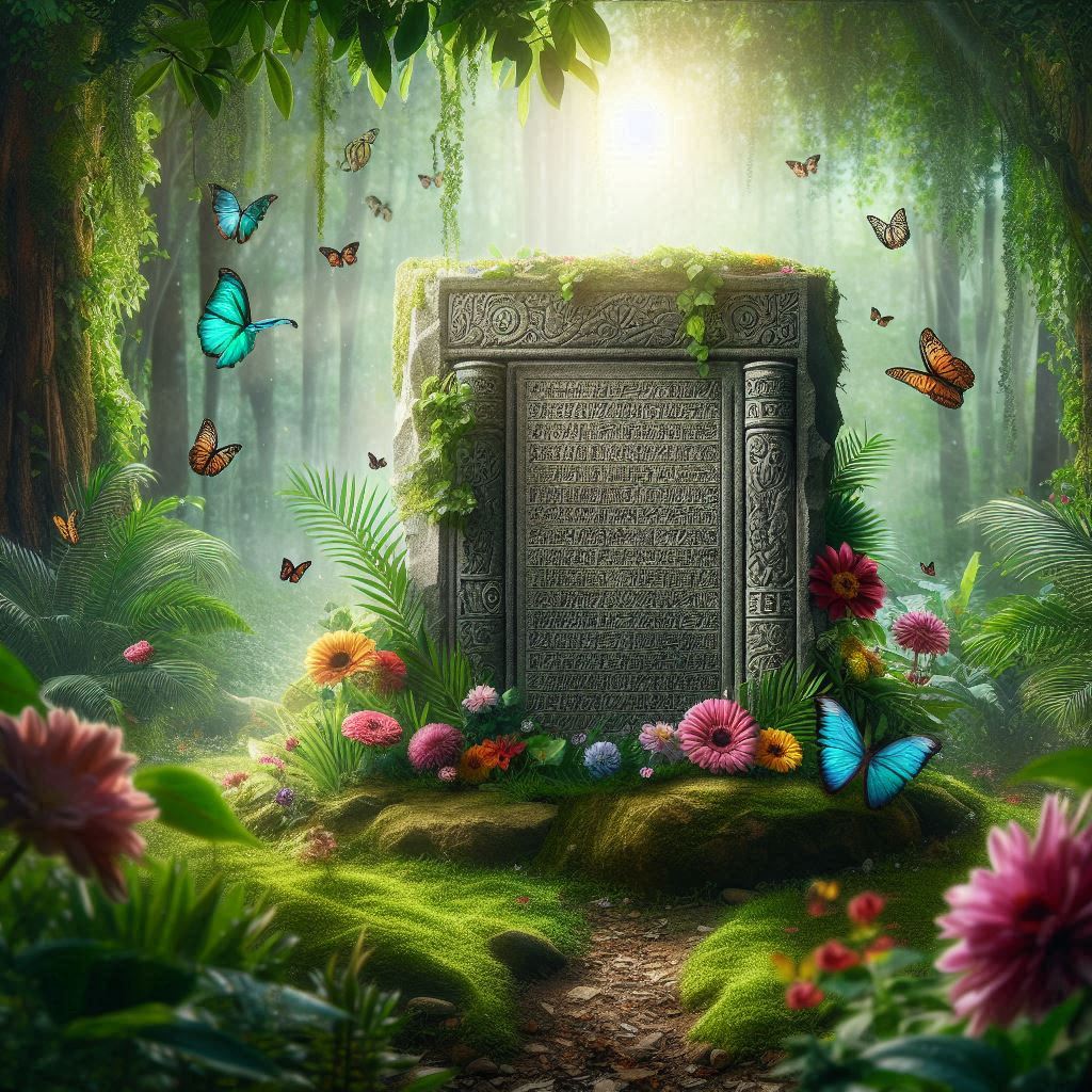 Я все ж сподіваюсь, що це не надгробок, а вмонтована в землю скрижаль з загальними правилами та настановами))... Типу як 10 заповідей Мойсея, що також були записані на скрижалях з каменю.