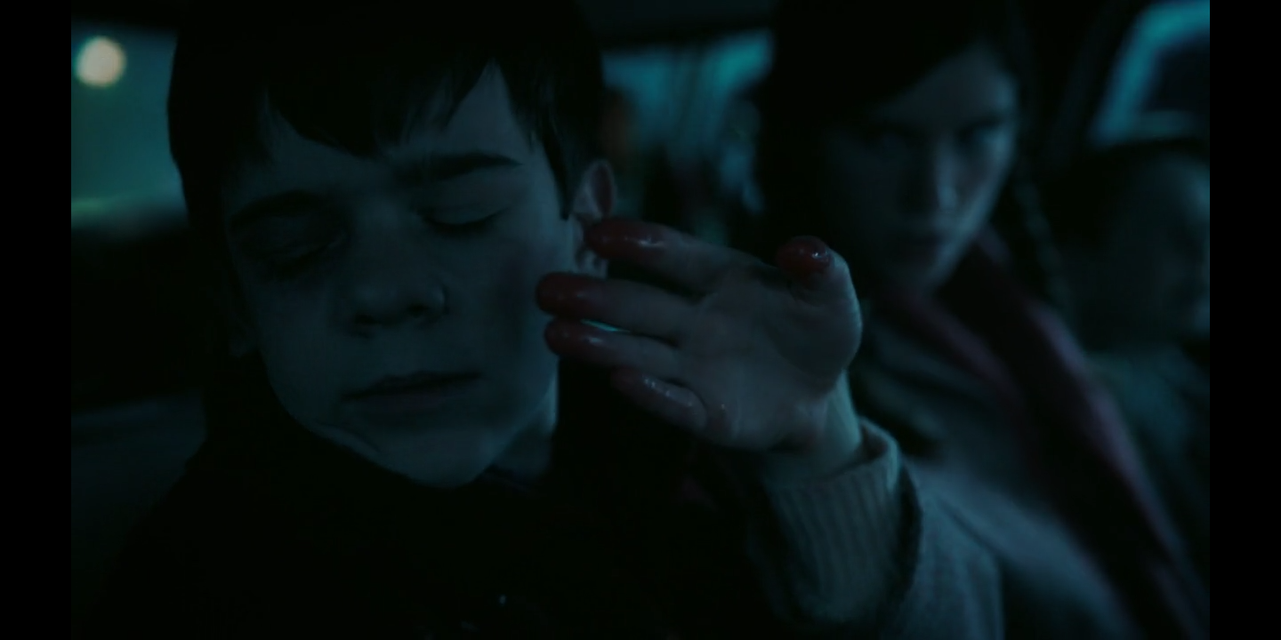 Далі хлопець намагається піймати тачку, щоб звалити з Деррі. Він ховає соску і піднімає палець верх. Зупиняється автівка з на вигляд звичайною сім'єю - чоловік, жінка, їх син та старша дочка.