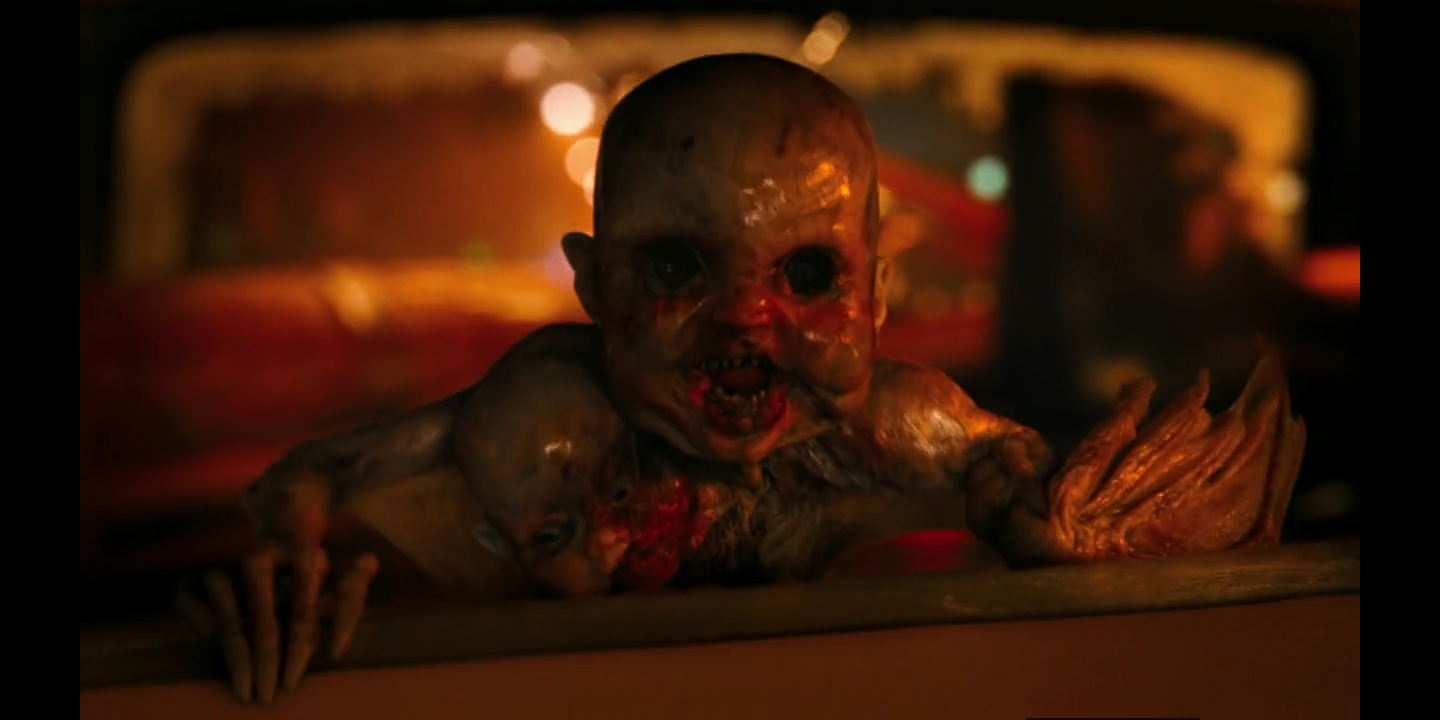 Ось це її новонароджене дитя. Гарненький пупс, правда?)) Далі він атакує нашого хлопця і відбувається аварія. Малий зникає.