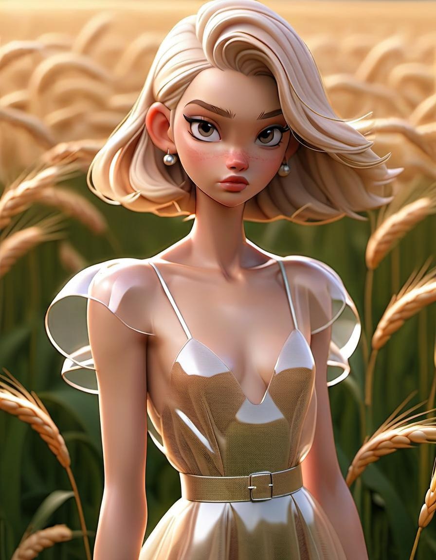 Пшеничний колір її волосся гармонійно поєднується з кольором пшеничного колоса та з прозорим нюдовим кольором її плаття. Всі кольори з однієї палітри, але все виглядає гармонічно. Я дуже захоплююсь тим яким вийшло це зображення.