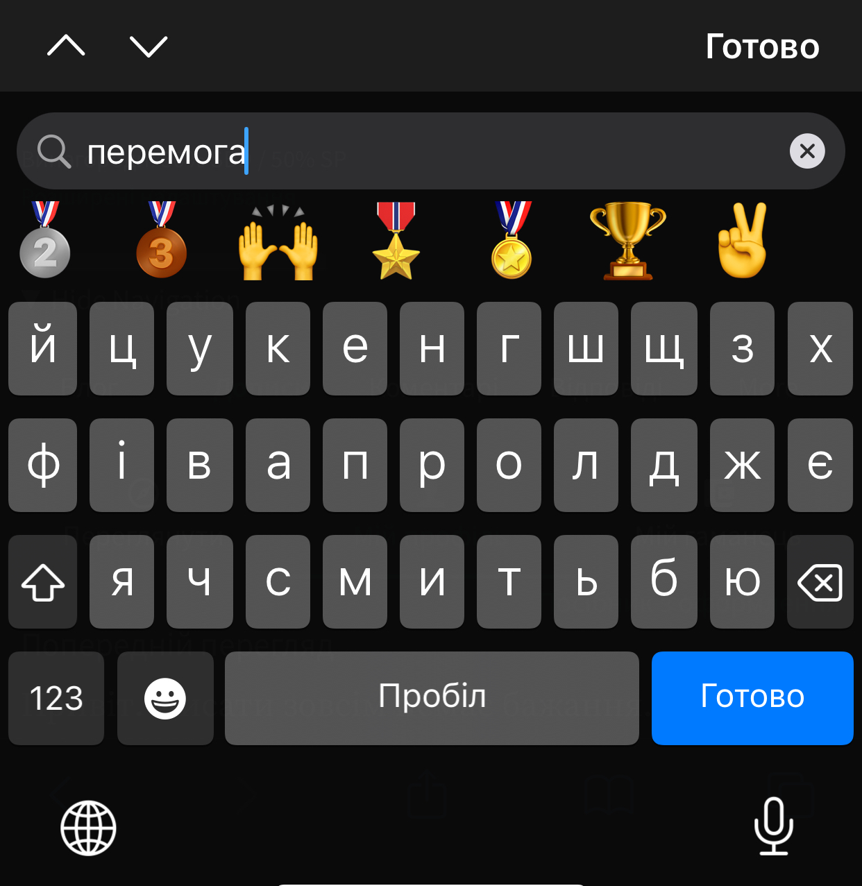 Пишучи слово «перемога», я бачу цей знак в розкладці свого телефону.