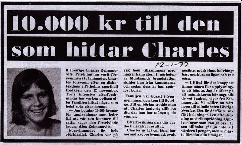 - Чарльз Зельманович - зник 1976 року в Пітео (Швеція) після вечірки, пізніше в 1993 році були знайдені його останки в одному з мисливських угідь поблизу місця зникнення.