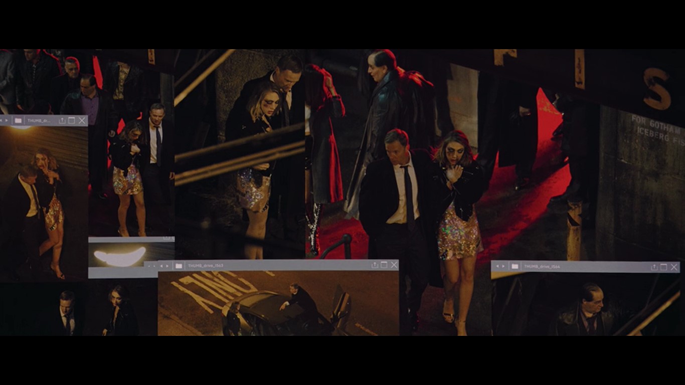 Коли вони відкрили файли, що знаходилися на карті пам'яті то побачили фото таємного життя мера. На цих знімках голова міста знаходився у оточенні повій та кримінальних суб'єктів серед яких засвітився Пінгвін/Колін Фаррелл. Бетмен одразу вирушає до клубу "Айсберг Лаундж" для розмови з Пінгвіном, щоб з'ясувати, що мер робив у його закладі і як часто він туди навідувався, а заразом дізнатися що за дівчина з ним на фото.