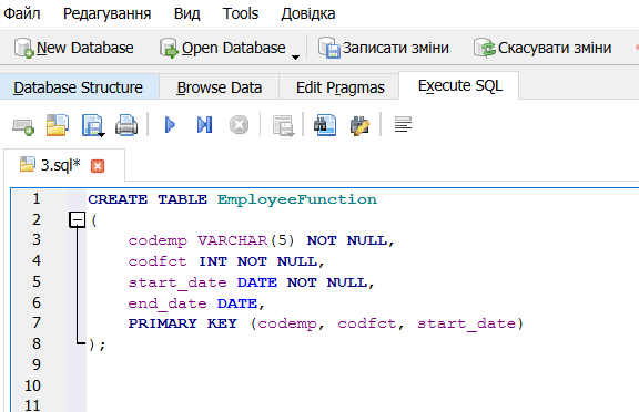 Те що ми зробили БД з чотирьох таблиць вийшло дуже зручним. Для даної реалізації не слід змінювати структуру трьох таблиць. Лише до четвертої слід додати два поля з датою. Перше обов'язкове, а друге може бути постим - коли працівник ще працює.