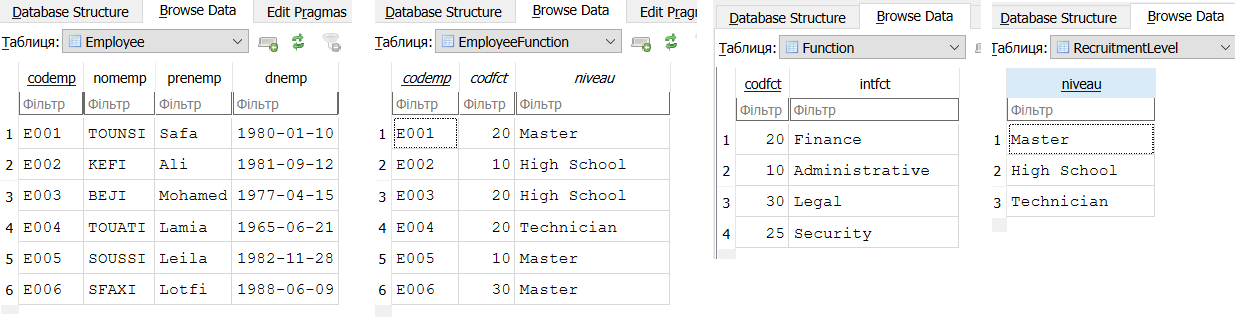 Якщо ми видалимо працівника, наприклад з Function title = Security, то інформація про Security теж не буде присутня в БД.