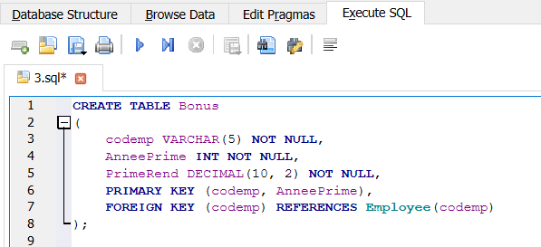 Ми пропонуємо додати таблицю під назвою «бонус» для запису бонусів за продуктивність, нарахованих кожному працівнику протягом року, з полями AnneePrime як роком бонусу та PrimeRend як значенням бонусу. Для цього ми повинні дотримуватись нового правила менеджменту R3: працівник може отримувати бонуси за результат протягом того самого року.