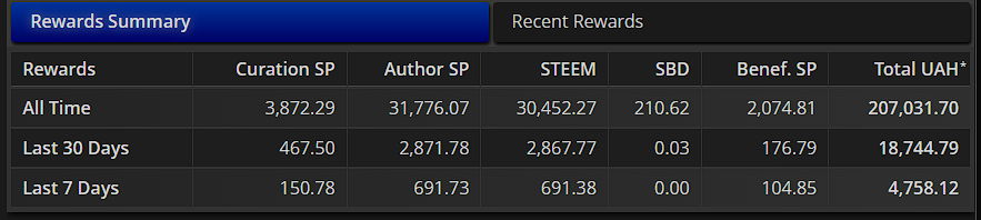 Тобто це ті 350 STEEM які я роздав всім віддаючи свій голос за їх ні дописи, і рівно стільки отримав я к куратор.