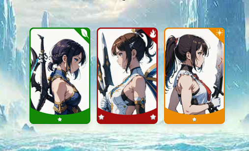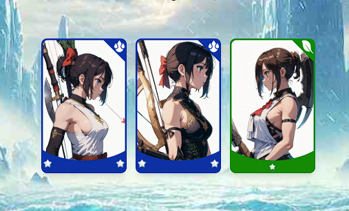 Випали дві одиничні карти, саме час для їх переобрання, другий раз теж - ті самі дві одинички(( ну хоч втретє випала гарна комбінація 1 2 3, але я помітив що краще всі одної масті,хм...а скільки тут кольорів?? А.. це ж не кольори це ніби стихії, вода, трава, вогонь і день/ніч.