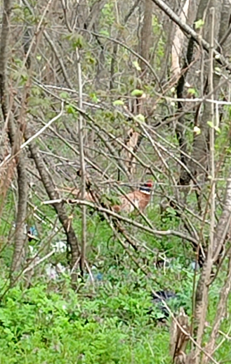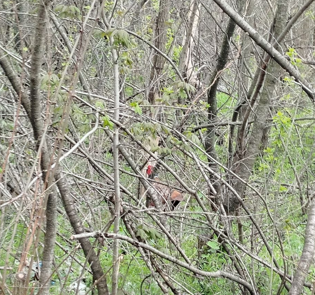 Найцікавіше було потім — я побачила фазанів! Мені здається, у нас там живуть кілька пар. Один красень з курочкою гуляв прямо по дорозі. Я тихесенько, щоб не сполохати, почала знімати відео на мобілку. Він не тікав, а просто тримав дистанцію шісти метрів, чимчикував собі в хащі й ховався за деревами. Я за ним трохи пройшла. Ми наче спостерігали один за одним. Сфотографувати його красиво через гілки було важко, але кадри на відео залишилися. Це була моя найкраща фотоздобич за сьогодні!))