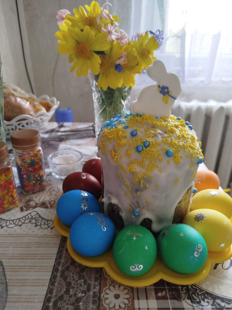 Свято Великодня продовжується, і сьогодні в нас був самий класний ранок. Це той приємний час, коли страв у холодильнику багато, нічого готувати не треба. Просто все дістаєш і насолоджуєшся сніданком. На столі в нас краса: паски, крашанки, готова буженіна, холодець та улюблена «Мімоза». Хоча вдома дуже холодно, рятуємося обігрівачами. Синові я навіть знайшла грілку під ноги, поки він грається за комп’ютером, а сама вдяглася тепліше.