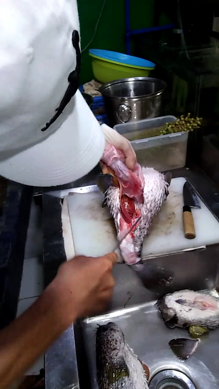 Hi'steemians this photo shown as how may master Korean Chef cut the pufferfish.. He taeching us the technique. Because a pufferfish have a toxic that can human be killed. If you been mistake to cut.. He doing this long time in Japan and Korea..