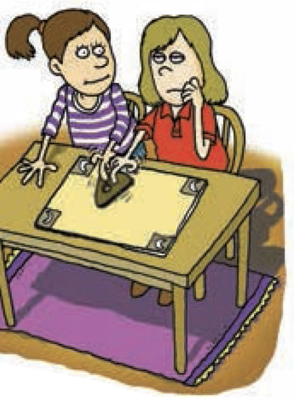 She got out her Ouija board: a cardboard square shape printed with the letters in order, numbers from 1 to 10, and boxes saying YES and NO. She put the plastic pointer on the board and we put our fingers on it. This was idiotic. We'd completed a pack of séances previously and nothing at any point happened. I smothered a yawn.