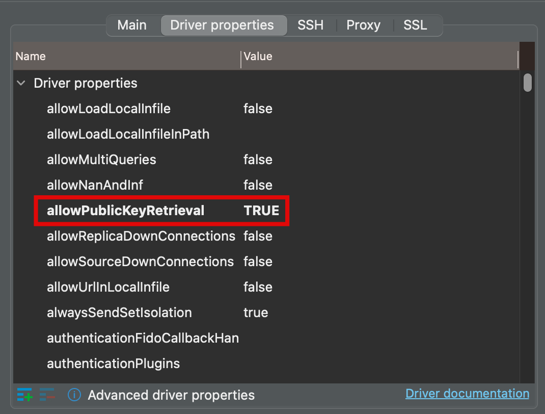 그리고 allowPublicKeyRetrieval=true 로 설정하면 됩니다.