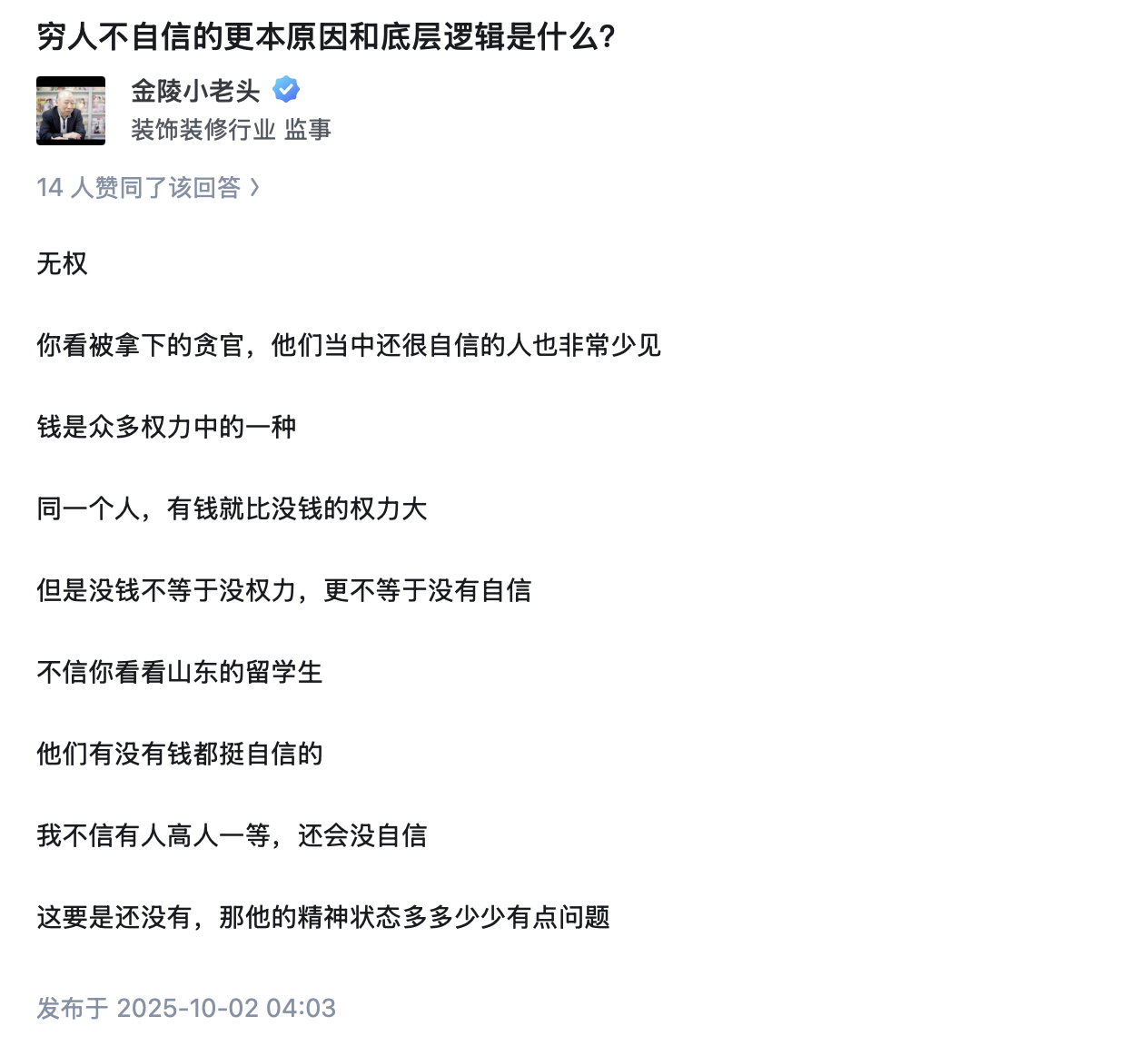 穷人不自信的更本原因和底层逻辑是什么?