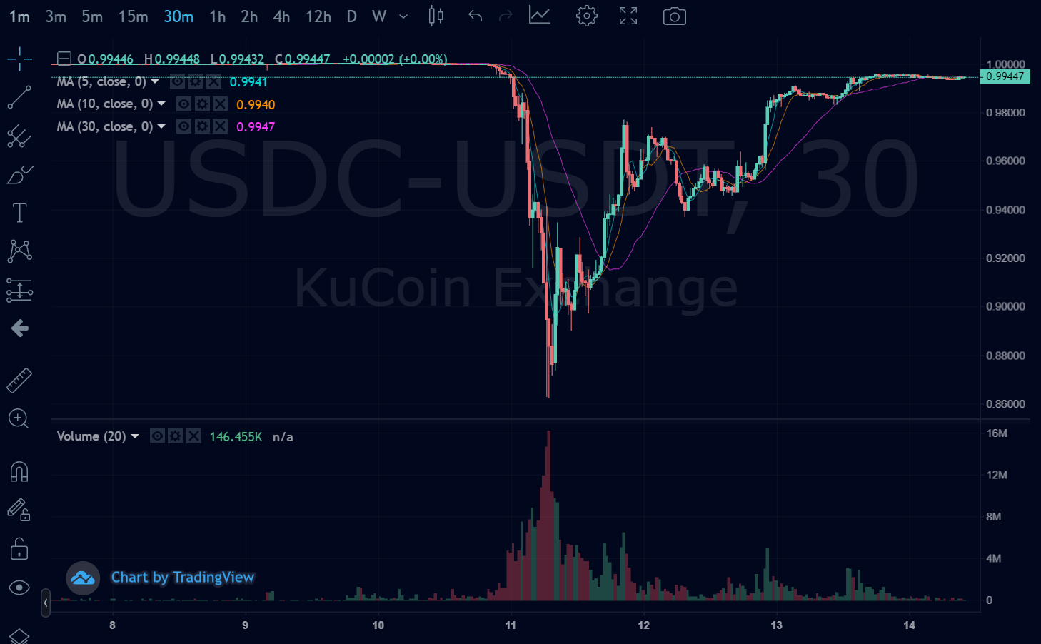 [USDC] 페깅 거의 회복deer3 (78)in #usdc • 3 years ago 1달러를 정확히 찍지 않은 건 의외긴 하지만... 0.995정도면 페깅 회복이라고 봐도 될듯. #zzan #krsuccess #peg