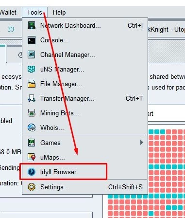 Idyll ब्राउज़र शुरू करने के लिए "टूल्स" → "Idyll Browser" चुनें