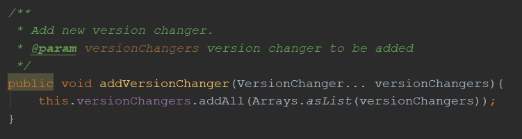 addVersionChanger method helps us to call specific query according to which version it currently is, so if the current version is 2 and you tell it to use version 3, it will use the addVersionChanger with version 3 to upgrade the database.