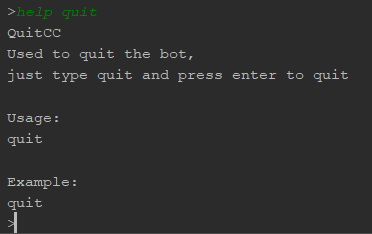 - Console Commands are commands that can be entered in the console during the execution of the bot.