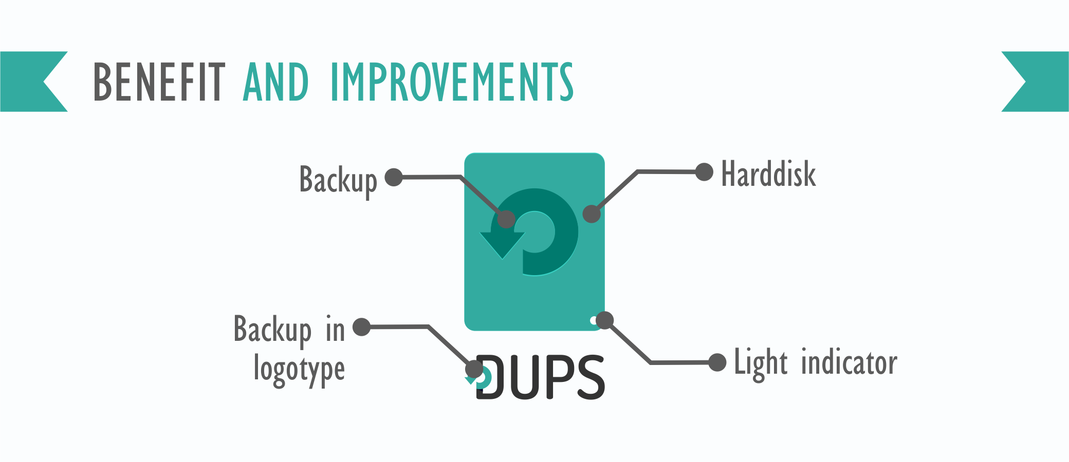 This new Dups's logo was inspired by a top front view harddisk in flat design with some enhancement. The project owner wants to make their logo looks like the paper icon theme. So I made a simple rectangle with backup icon and a status indicator dot to represent backup harddisk. The logomark will combined with the simple logotype that included backup sign in it's D font. This new logo will look simple, light, and the logotype will make differences with other competitors.