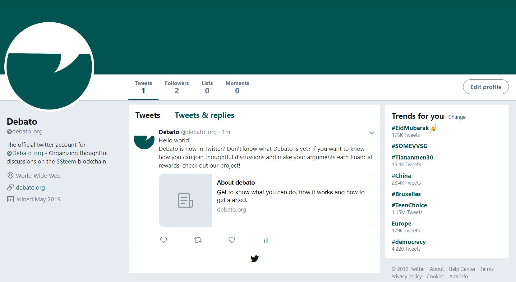A twitter page! As mentioned already this would be a great way of communicating changes, creating feedback and sharing the project with others outside of the Steem community. Because Debato does not only aim at existing Steem users this will help in attracting those external users. Debato is also designed in a way that users do not need prior understanding to get started as an attempt to attract a wider audience. If you would like to stay up to date on smaller changes or events, go to https://twitter.com/debato_org
