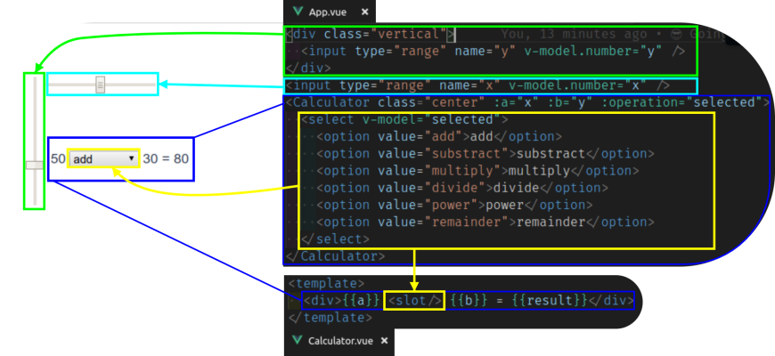 <Calculator class="center" :a="x" :b="y" :operation="selected">