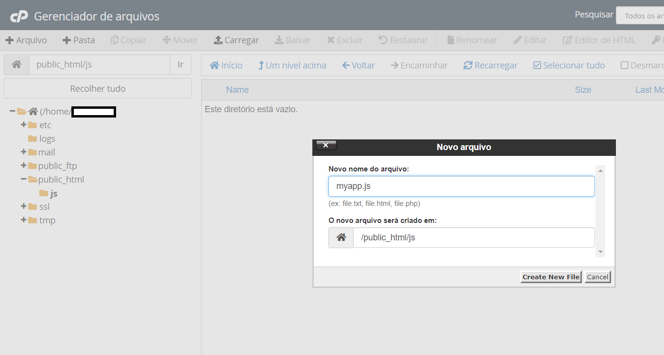 Agora, crie um novo diretório (pasta) chamado "js" no diretório (pasta) de onde está o arquivo index (o arquivo HTML que criamos), este é o local onde colocaremos o próprio código javascript personalizado. Aqui está uma foto do que parece, observe que eu não estou usando o Windows, Linux nem MAC, estou usando um dos servidores que possuo, mas se você tiver o servidor WAMP instalado localmente no seu computador, você criará dentro do diretório WWW (se essas intruções soam um pouco complicadas, salve este tutorial para mais tarde e siga-me para ver o conteúdo suplementar vou postar muito em breve)