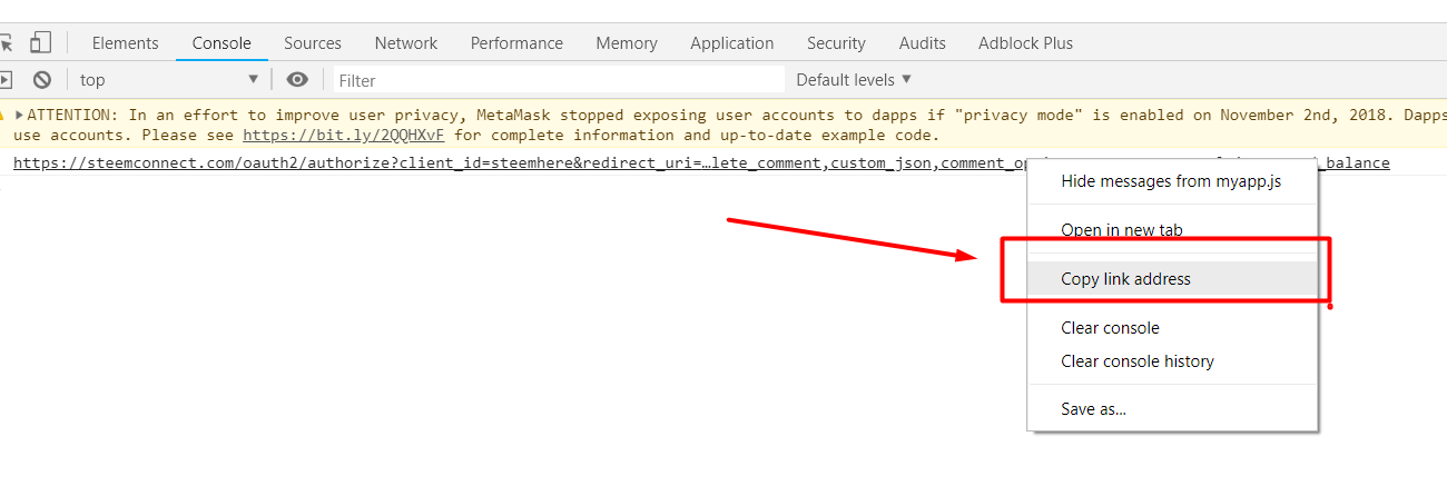 Ou apenas clique nele, isso abrirá uma guia do site SteemConnect para você entrar, mas você não precisa fazer isso agora, basta clicar no URL e copiá-lo