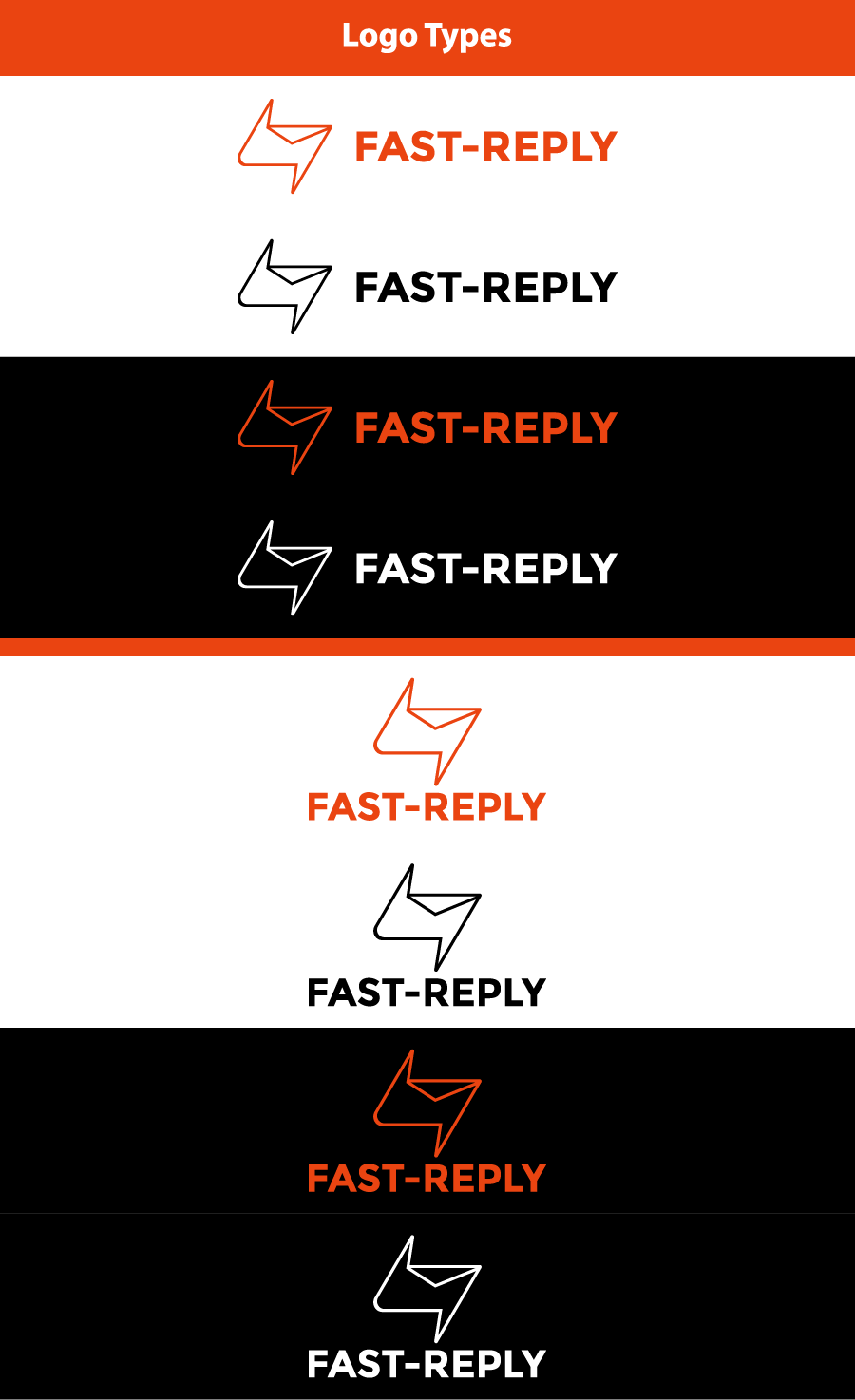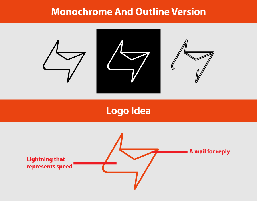 - The logo created was based on the concept of the project which is having a fast-reply, It was combined with a lightning that indicates speed and a mail for the quick reply