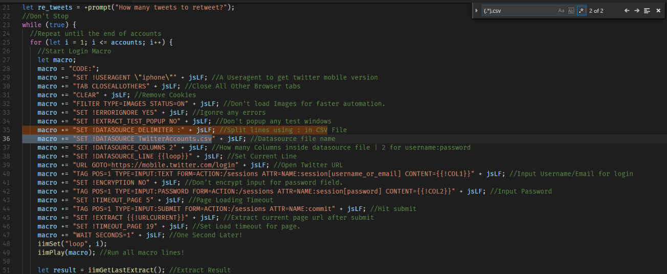 macro += "SET !DATASOURCE TwitterAccounts.csv" + jsLF; //Datasource file name