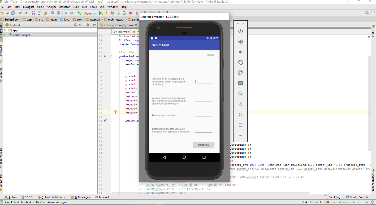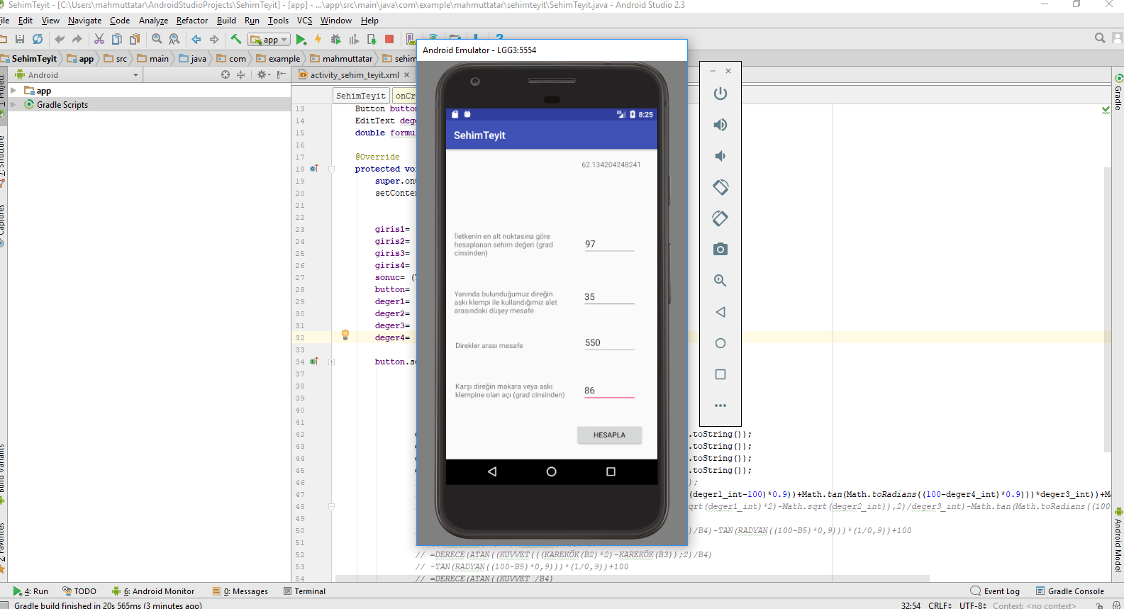 //formul = (Math.toDegrees(Math.atan((Math.pow(((Math.sqrt(deger1_int)*2)-Math.sqrt(deger2_int)),2)/deger3_int)-Math.tan(Math.toRadians((100-deger4_int)*(0.9))))*(1.111111))+100);