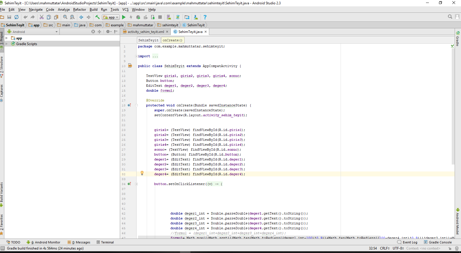 TextView giris1, giris2, giris3, giris4, sonuc;