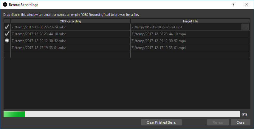 [utopian-io] Improved remux dialog for OBS Studio, with batch operation support and drag/drop support
