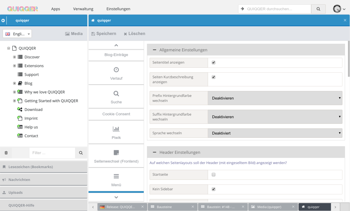 QUIQQER is designed so that even inexperienced users can quickly implement their first projects. You don't need to have any programming knowledge. Editors concentrate fully on their content and benefit from the fast backend, the comfortable media area and an individually configurable workspace.