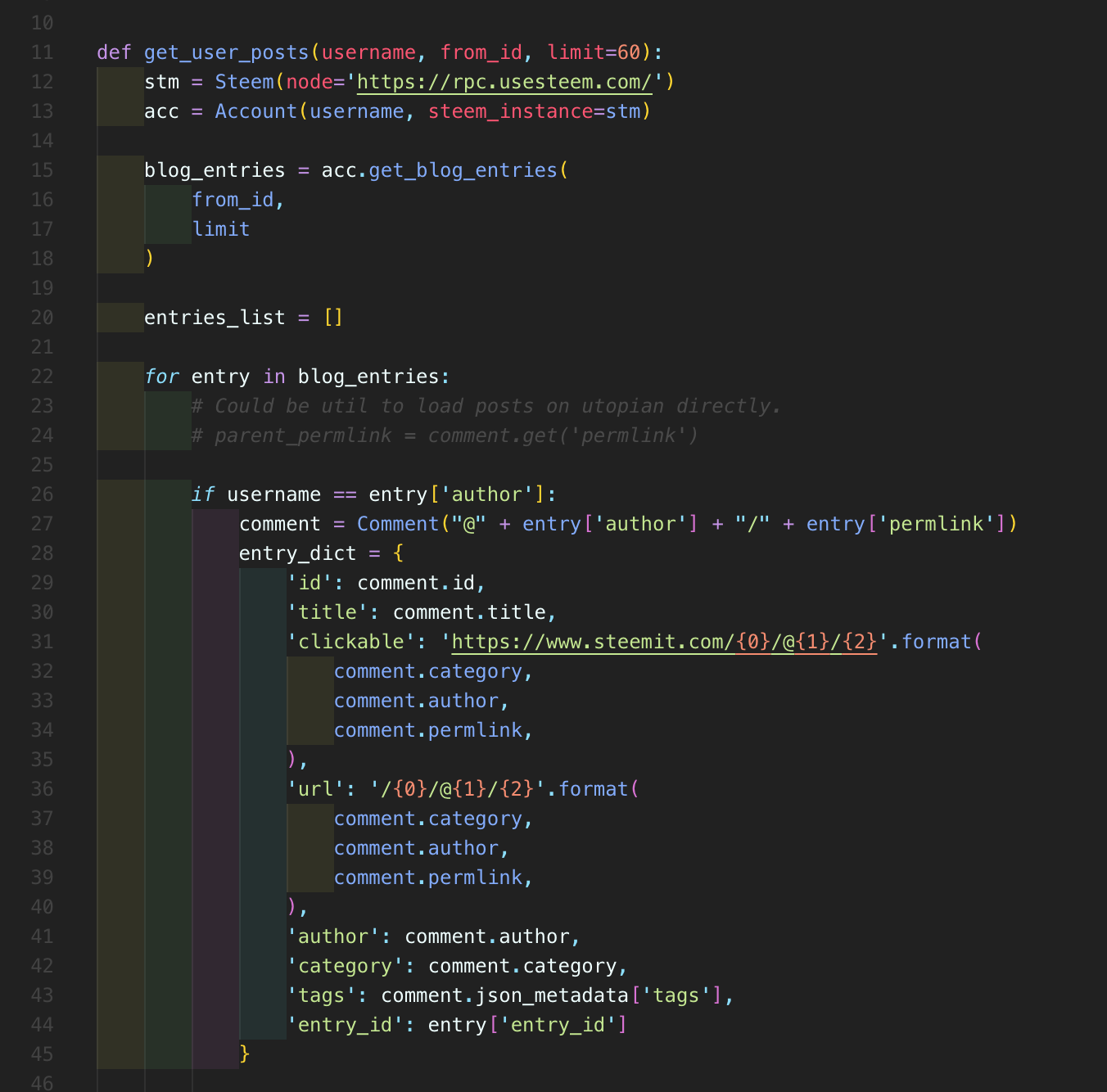 This was a pretty small task request I did this week for SteemLogs, which was just migrating the posts loader from steem-py to beem since steem-py isn't well maintained anymore. There wasn't too much work done on this, since steem-py had basically the same interface as beem, so I just had to update the imports and one or two variables. Here's the updated code: