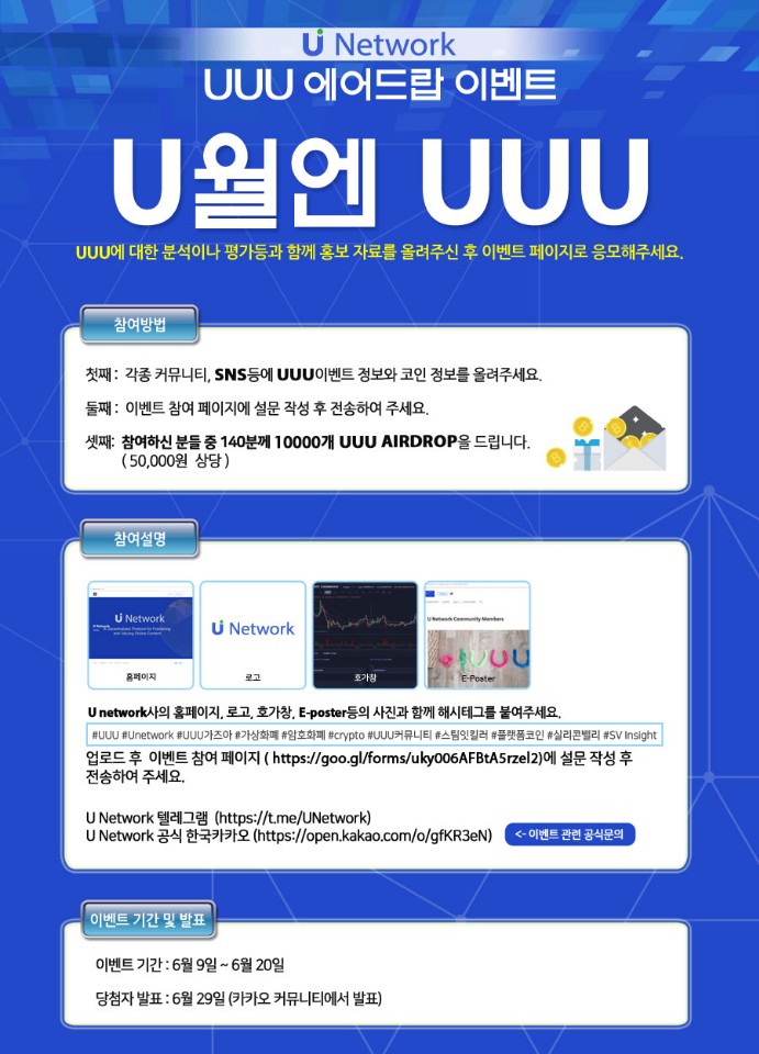 에어드랍수량 U : 1인당 10,000UUU (약 5만원상당)